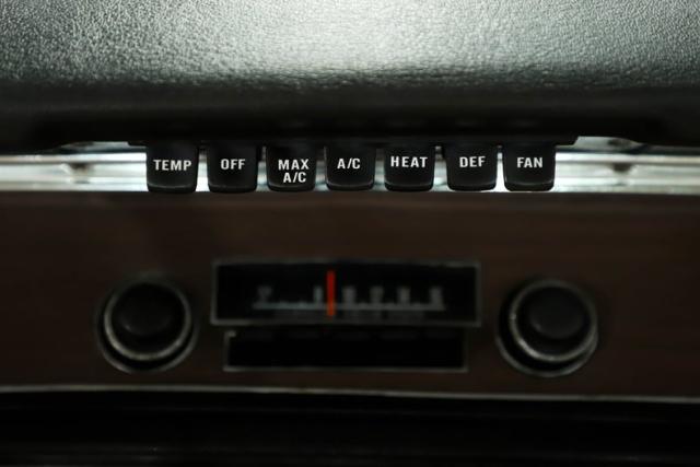 INTERIOR: The door jambs are painted up real nice and the weatherstrips were replaced. The door panels, armrests and handles all look like new. Very clean dash with the wood grain and original gauges. The dash pad appears to be replaced. The climate control and radio are both in great condition. Nice glove box with a working light. And the factory vents are also in nice shape. The kick panels and carpeting were both replaced. The center console is a great original and has functional lights too. It also has the coolest shifter ever made, the Hurst long throw pistol grip, and that is original from the factory. The front bucket seats were both restuffed and recovered and are very comfortable. The rear seat was also recovered and has seatbelts too. The headliner is nice and tight with no wrinkles and has a working dome light. The sun visors and rear view mirror look new. A very nice original steering wheel nicely completes the interior.