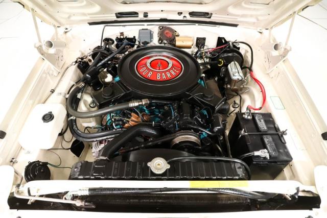 UNDERSIDE: It looks like it was flipped on a rotisserie because the underbody is all clean metal painted glossy Alpine White. The steering and suspension look to have been rebuilt. It has newly converted disc brakes in front, the brake lines also look new, and the e-brake is hooked up. Totally new fuel system including the tank. Nicely installed and new exhaust system with Cherry Bomb full size mufflers. Looking up at the date code correct engine it is absolutely spotless. It also has the original VIN number matching 4-speed transmission and a 8 \" rear end out back.