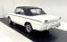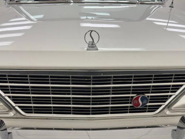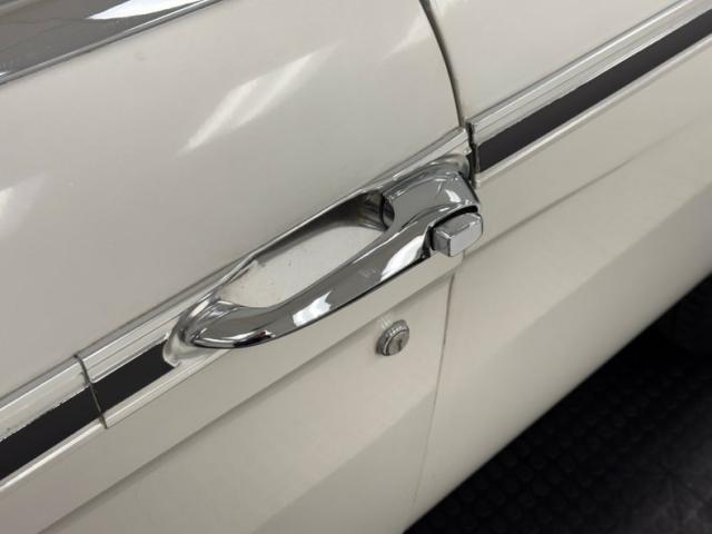 The somewhat boxy body wears white on its base which is adorned with a black canvas convertible top accentuated by the black spear just below the shoulder line, pointed at both ends and bordered by metal trim. Inset headlight bezels have angular sides that dictate the unusual shape of the grille and will likely not be mistaken for another brand due to the V-shaped edges, and it wears a Studebaker R2 badge. In back, tail lights cap the protruding decklid while the latch panel is tucked under it and retains a prominent body fold that is a continuation of a rear fender accent which has a mirror line on the front fender, more visually muted on white paint. Some contrast is brought in with the 15-inch argent gray American Racing Torque Thrust wheels, with polished rims and 215/75R15\'s at each corner. The canvas top is in great shape and so is the metal work and emblems that include Daytona in script and a coveted Avanti R2 Supercharged oval. Panels are straight, paint is great, and we could not find any glaring exterior imperfections on this rare car.