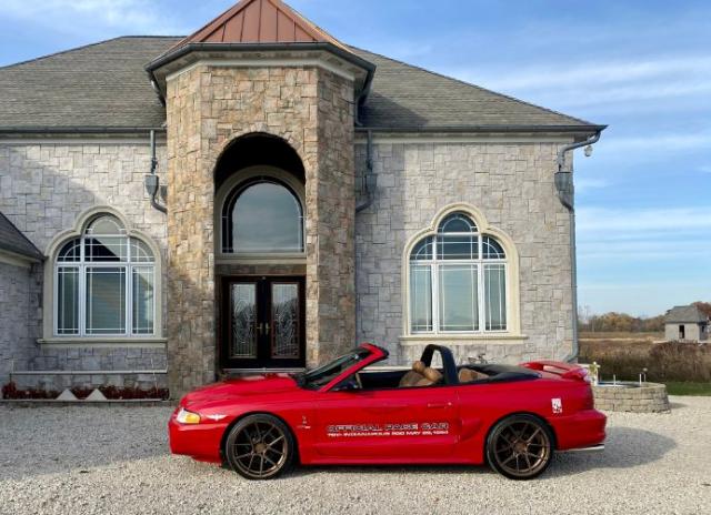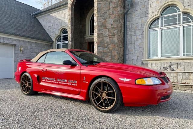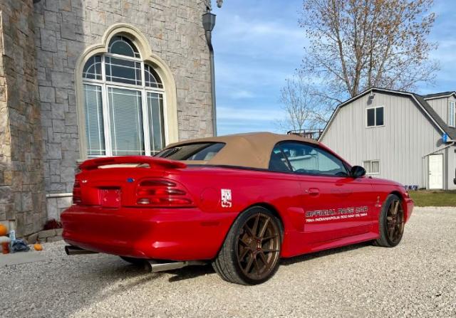 1994 Mustang Cobra Convertible Pace Car. 347 ci Manual transmission Rio tinted red paint with saddle interior and convertible top. Limited production number 186 out of 1000. This car had only one owner, with 24000 miles. Shelby style ram air hood, original Saleen side ground affects, 2 gage dash pod (clock and fuel pressure) and roll bar. Driving bulbs changed to high end Led\'s. Performance after-market rims and tires. Ferrara Forged 8 staggered rims, 9x20 front and 10.5x20 in rear with Nitto Invo tires (all new). Original rims were kept to go with the car. Engine is a 347 all forged parts done professionally by Ford Total Performance Solutions, (paperwork is available. Only 3000 miles on new engine, GT40 turbo swirl aluminum heads, Pro M 93 mass air flow with 36lb injectors. BBK full length headers, Bassani X pipe and stainless-steel loudmouth exhaust. 3:55 Rear end with SVT cover. Mac springs lowered 1.5. New EBC front and rear brakes. Cover King red car cover also comes with it. Please Note The Following **Vehicle Location is at our clients home and Not In Cadillac, Michigan. **We do have a showroom with about 25 cars that is by appointment only **Please Call First and talk to one of our reps at 231-468-2809 EXT 1 ** FREE Consignment Visit Our Site Today Easy To List Your Vehicle and Get it Sold in Record Time.