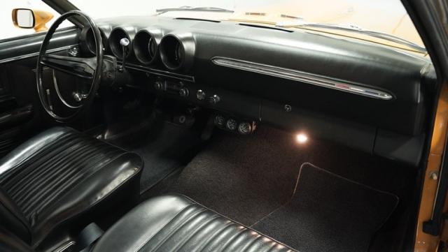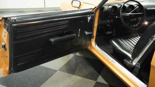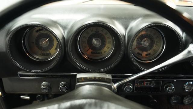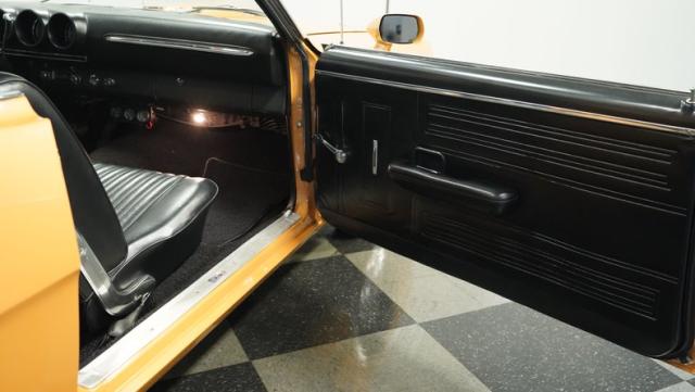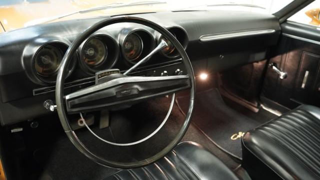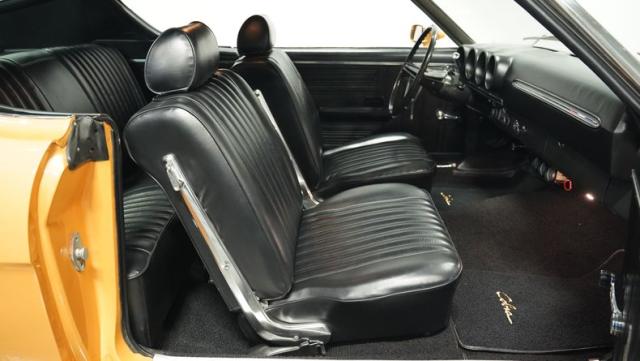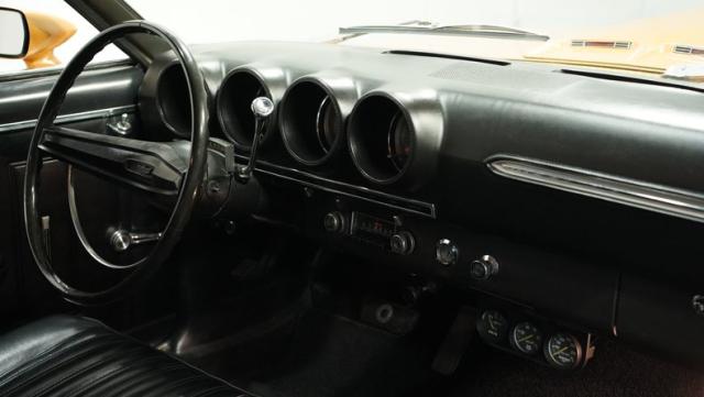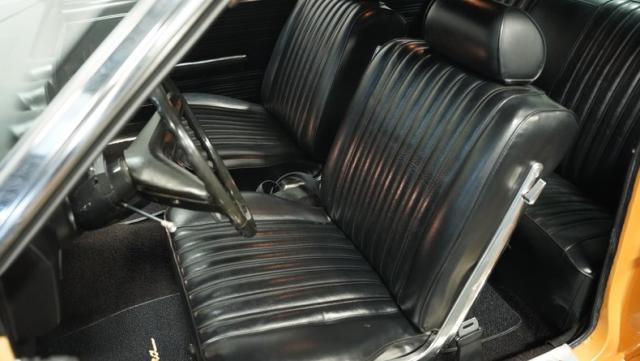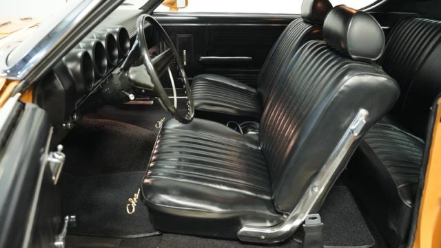 Inside, black vinyl bucket seats provide a cockpit feel, perfectly matched to this car\'s performance pedigree. The column-mounted shifter for the C6 automatic transmission sits ready for action. An AM radio and auxiliary gauges round out the driver-focused interior, while power steering ensures effortless maneuverability. The black trim and clean lines create a no-nonsense environment built for business.