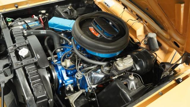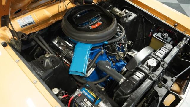 Lift the hood to reveal the star of the show - a 428 Cobra Jet V8. This powerhouse breathes through a 4-barrel carburetor, channeling its might through a C6 3-speed automatic transmission. The Ford 9-inch rear end puts that power to the pavement. Dual exhaust with aftermarket mufflers provides a fitting soundtrack. Power disc brakes up front bring this beast to a halt with authority.