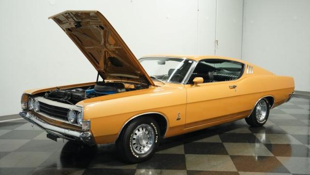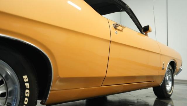 This 1969 Ford Torino Cobra 428 Cobra Jet combines raw power with classic muscle car style. With its potent 428 Cobra Jet V8, striking Gold Glow exterior, and driver-focused black interior, this Torino Cobra delivers an authentic muscle car experience. Call today!