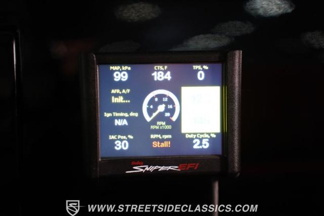 Under the hood, the pinstriping continues and only enhances the clean engine bay, which houses the Holley Sniper fuel-injected 350 cubic-inch V8 engine. This is paired with a reliable 700R4 4-speed automatic transmission that runs back to a later-model 10-bolt rear axle.