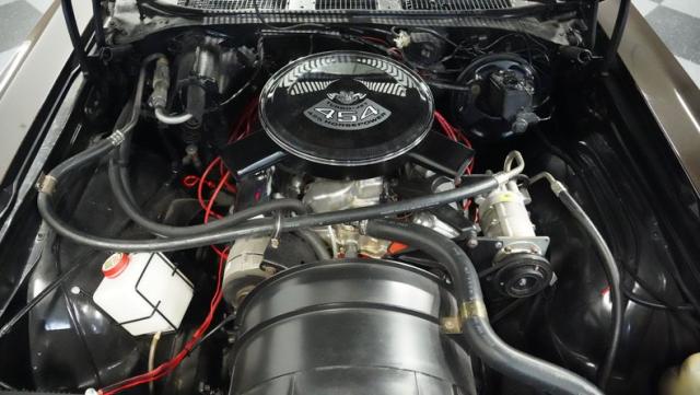 The original numbers-matching 454 cubic inch V8 engine pairs with a TH400 3-speed automatic transmission. Performance upgrades include an aluminum intake manifold, Holley carburetor, headers, and electronic ignition. The factory cooling system maintains optimal temperatures, while the MagnaFlow dual exhaust system produces an authoritative tone. Power front disc brakes, along with the 12-bolt rear end, put the power to the pavement effectively.