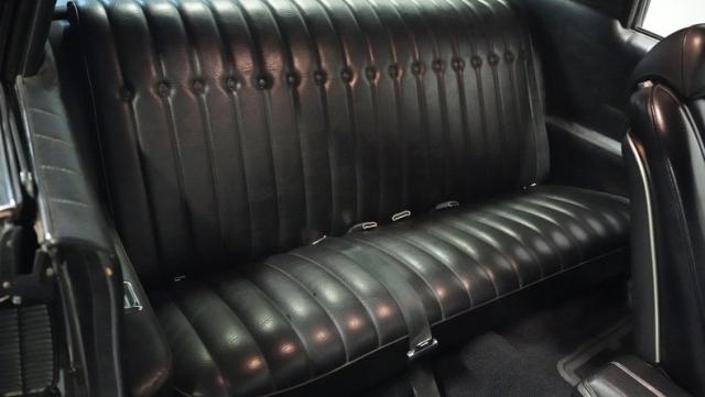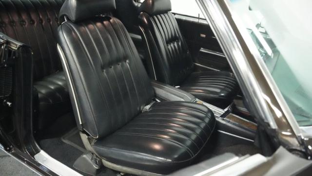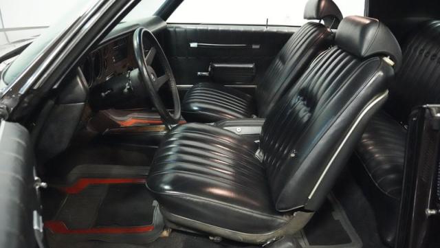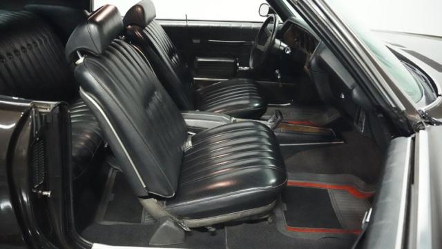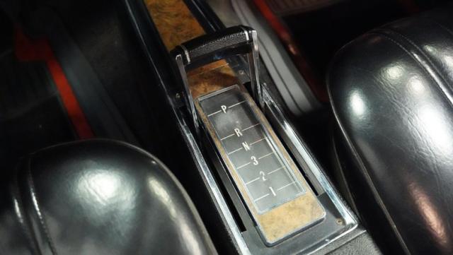 Black vinyl bucket seats anchor the luxury-focused cabin, complemented by the signature horseshoe shifter console. Power steering and factory air conditioning deliver comfort and control. The upgraded AM/FM stereo with auxiliary input provides modern audio capabilities, while custom gauges keep tabs on the vital signs.