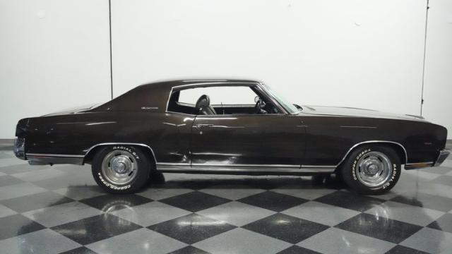 This numbers-matching 1972 Chevrolet Monte Carlo Custom 454 was specially configured from the factory with the potent LS5 big block V8. The Midnight Bronze finish creates a muscular vibe, amplified by its 15-inch Rally wheels with distinctive Corvette center caps and BFGoodrich 245/60R15 tires. The dual exhaust tips and subtle 454 badging showcase this Monte Carlo\'s performance heritage. Clean body lines flow from the elegant front grille through the hardtop roofline, creating an imposing presence.