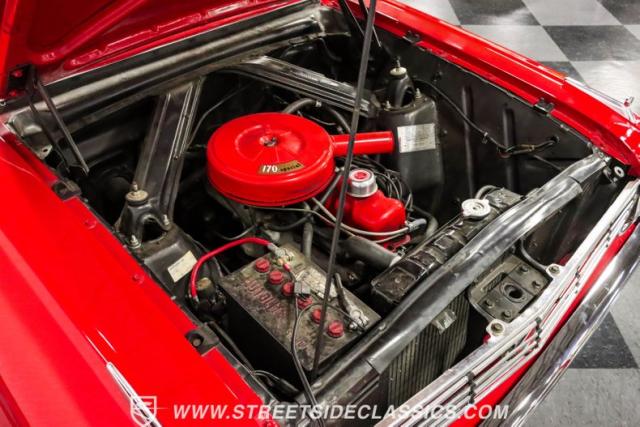 The 170 cubic inch inline-six cylinder engine teams up with a Ford-O-Matic 2-speed automatic transmission to deliver a genuine 1960s driving experience while the factory-style single exhaust system produces a proper six-cylinder note. The suspension configuration features coil springs and a sway bar up front, while the rear setup employs a solid axle with leaf springs and spring-assisted shocks. Power drum brakes at all four corners provide the stopping power.
