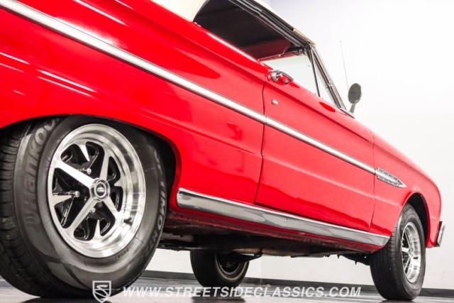 This 1963 Ford Falcon Futura Sports Convertible represents premium Ford motoring from the early 1960s. With its 170 cubic inch six-cylinder engine, red-on-red color combination, and power convertible top, this classic delivers pure open-air enjoyment. Call today!