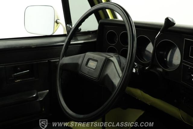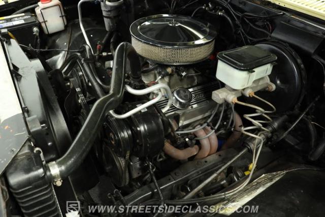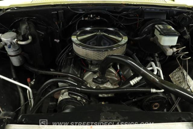 Under the hood, you\'ll find a small block 400 V8 paired with a smooth-shifting 3-speed automatic transmission. The engine bay is equipped with a Holley 4-barrel carburetor, Dart II aluminum intake, and an aluminum radiator for enhanced reliability. Power steering and power brakes ensure confident handling, while original air conditioning with an R134a connection, Edelbrock valve covers, and dual exhaust highlight thoughtful upgrades. Factory front disc brakes and dual gas tanks round out a powertrain that balances performance and practicality.
