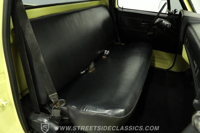 Step inside to find an inviting all-black interior that blends classic charm with functional comfort. The vinyl bench seat looks great and provides plenty of space, while recent carpeting gives the cab a fresh feel. The dash is fitted with a protective cover and features clear gauges, and the lower dash, doors, and cab surround are all painted to match the body. Enjoy your favorite music through the Pioneer receiver with AUX and Bluetooth, making every drive more enjoyable.