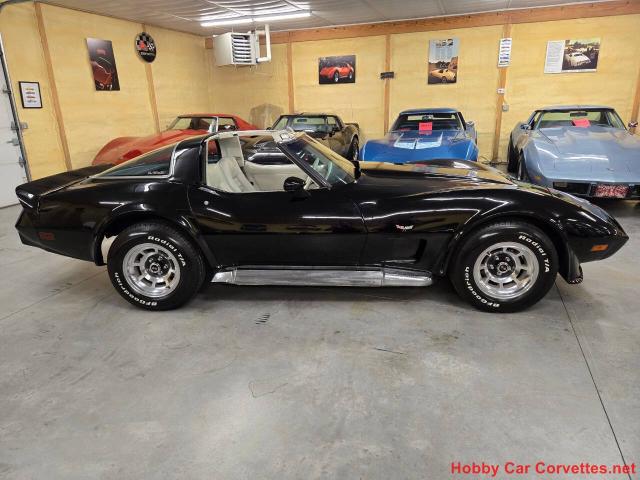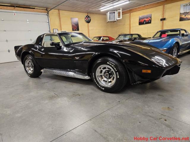 1979 Black Corvette 28K Miles Hot Rod For Sale For more information visit: https://www.hobbycarcorvettes.net/corvette/1979-black-corvette-29k-miles-hot-rod-for-sale/ CASH PRICE: $ 23000 Transmission: Automatic Engine: 350 Mileage: 28,940 Original Details 350 engine, 28,940 original miles, automatic transmission, original oyster leather interior, power steering, power brakes, power windows, A/C, tilt and telescopic steering column, dual sport mirrors, alloy wheels, AM/FM radio, factory side exhaust, Holley fuel injection, Pace Car spoilers, and much more. The last owner did all kinds of upgrades to this corvette including replacing the engine, Holley fuel injection, factory side exhaust, Holley aluminum intake, aluminum radiator, and much more. We changed the oil and filter, transmission fluid and filter, and checked and lubed the chassis. We replaced the idler arm, tongue bushing, leaf spring rubbers, and much more. This corvette runs and drives strong with all the upgrades the last owner made to it. 1979 was the highest production year for the C3 generation of the corvette.