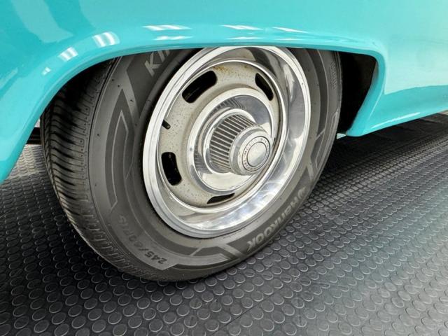 Under the hood, within the restored black engine bay, sits now a 454ci V8 making a consignor estimated 500hp! Within this block are flat top pistons, a Pete Jackson gear drive, Crane roller rockers, and a Cam Dynamics 575 lift 305 duration camshaft. It is topped with an 850cfm 4-barrel Holley double pumper carburetor and 1974 781 casting polished oval port heads. It\'s all blinged out with chrome valve covers, a chrome air cleaner assembly and a new AGI distributor. An aluminum case Borg Warner T10 4-speed manual transmission is bolted on the back of the mill and sends power back to a 12-bolt 3.55 Positraction geared rear axle. For an extra seat of the pants kick, a spare 4.11 gear set and Posi unit are included.