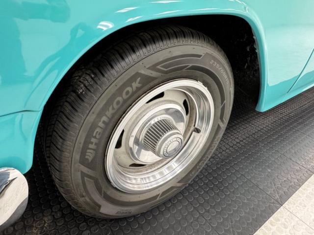 Underneath we are met with a mixture of patina, black paint and some surface rust on the usual suspects. A rust-free frame supports the independent coil spring front and leaf spring rear suspensions. Disc brakes have been added on the front while drums remain on the rear. Heavily surface rusted exhaust snakes its way rearward from a pair of headers with matching surface rust and ending in chrome tips. We note a repair on the spare tire well and some invasive rust on the body hangers and rocker panels.