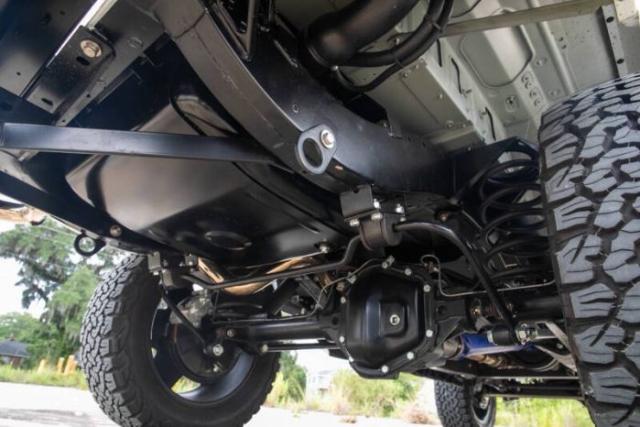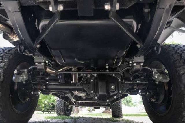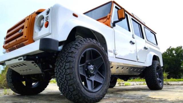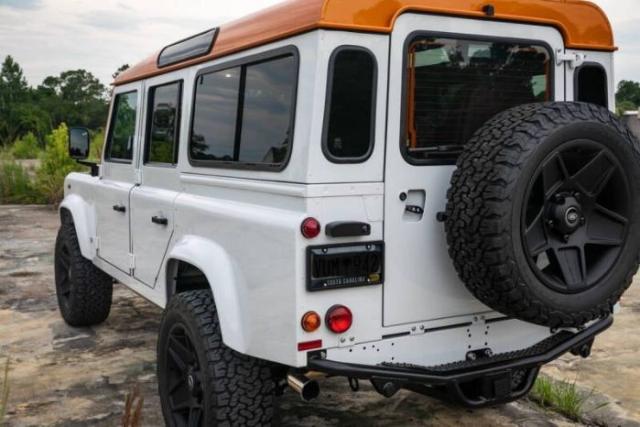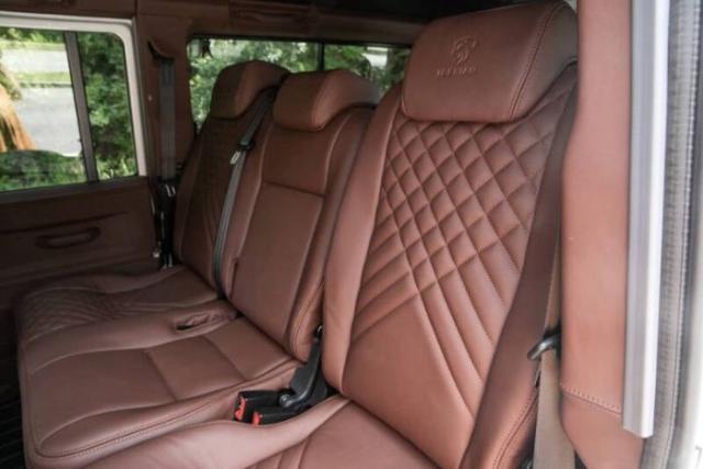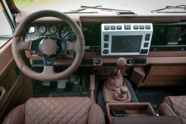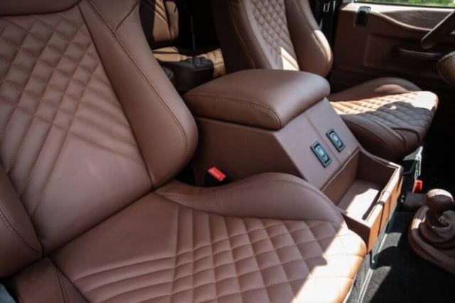 1996 Defender has been fully rebuilt from the ground up. The original chassis and axle housings are the only original parts used in the build. Every single part has been replaced with brand new genuine Land Rover parts. the entire body assembly and all related panels and parts have been replaced including front wings, puma bonnet, galvanized bulkhead, galvanized inner fenders, body tub, t-post, front windshield frame, floors, seat box, side window panels, roof assembly, and all puma doors. All new genuine glass all around. The axles have been rebuilt with all new internal parts. The suspension system is completely new. The brakes, bearings, and pipes are all new. The driveshafts have been replaced with new heavy-duty shafts and universals. The entire steering system and the hub assemblies and the steering knuckles are new. The exhaust system is brand new stainless steel. Underbody protection and the front steering guard are brand new. The wheels are 20-inch Khan Mondial wrapped in BF Goodrich all-terrain TA tires. New front and rear step bumper. New lights all around including the rear third brake light. New genuine LR Adventure series LED headlamps. A new fuel tank and tank guard, fuel lines, brake lines, wishbone, sit under the rear of the new body. A new wiringloom and all associated electrical components along with a complete computer system mounted beneath the passenger seat run the electronics. The doors, floors and all body panels interior have been covered with dynamatt for sound deadening. Thick new black luxury carpet throughout the car. Genuine rubber floor mats and rear load space matt. The interior has a new TD5 dash with leather-covered instrument binnacle and dash top. The new leather MOMO steering wheel has an embossed Iberian logo. All new LED gauges, new instruments, new switches, new TD5 center dash bezel with switches. Ready for your customer-installed entertainment system. The emergency brakeThe new Recaro seats and new Puma second and third-row