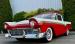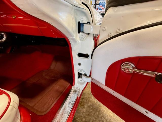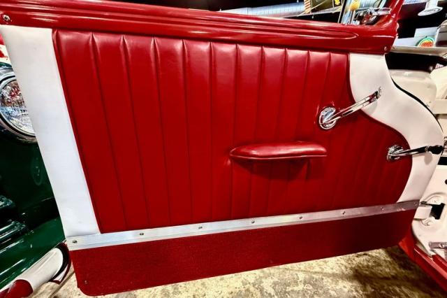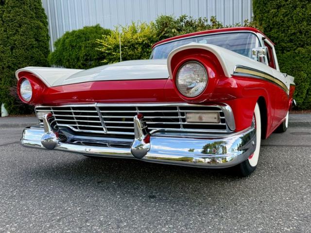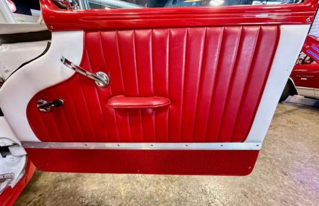 The exterior is equally impressive, finished in a striking red and white paint scheme accented with tasteful gold accents. The 14-inch steel wheels are adorned with iconic 1957 Ford hubcaps and wrapped in wide whitewall tires, completing the classic look. The steering box has been professionally rebuilt, ensuring smooth and responsive handling.