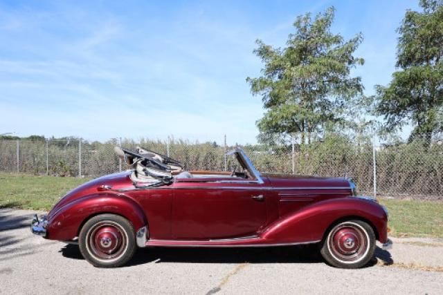 Elegant and Luxurious 1952 Mercedes-Benz 220 Cabriolet AThis luxurious and elegant 1952 Mercedes-Benz 220 Cabriolet A is offered in the very charming color combination of medium red over light grey leather interior. A highly attractive car that runs and drives but should be serviced prior to active road use. Restored some years ago, the car presents well with paint that retains its luster and shine. The interior is nicely appointed with a quality restoration and sports a Telefunken radio. The interior wood trim and brightwork are in tidy condition as is the rest of the cabin. Under the hood is a nicely presented engine bay with the Mercedes \'6\' mated to a 4-speed manual transmission. The odometer reads 90,746 km, or 56,392 miles which is believed to be its original mileage. This elegant motorcar exudes period chic and would be at ease on a concours show field or a drive on a warm summer\'s evening, made even easier with its optional driving lights fitted to the front end. Surely a wonderful opportunity to acquire one of Mercedes most attractive convertibles of the early 1950s. One of only 1,178 Cabriolet A\'s builtShowing just 90,746 km (56,392 miles), believed to be originalElegant and luxurious Mercedes-Benz CabrioletWell-presented example featuring an older restorationFinished in medium red over light gray leather interior Price: $97,500