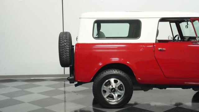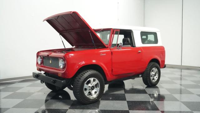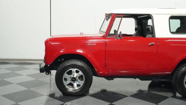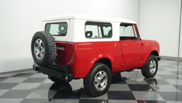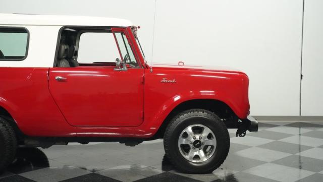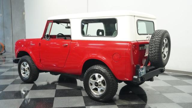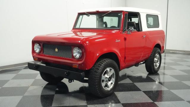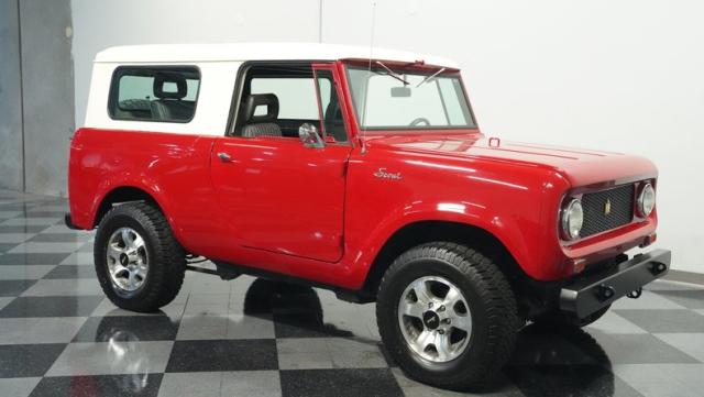 What if you could have all the style and character of a classic International Scout, but with a modern drivetrain and chassis? You can with this carefully restored and upgraded 1962 International Scout! This classic is sitting on the chassis of a 1999 Isuzu Amigo 4x4 and is amazing. Finished in Bright Red with a White removable hard top, this restored Scout is rolling on Isuzu Amigo bright-finish 16-inch alloy wheels with custom \"Scout\" logo center caps, wrapped with 245/75R16 Uniroyal Laredo HD/T tires. A matching spare tire is mounted on a swing-away in the rear.