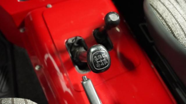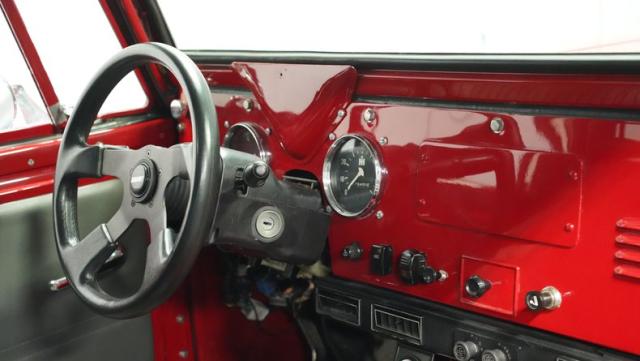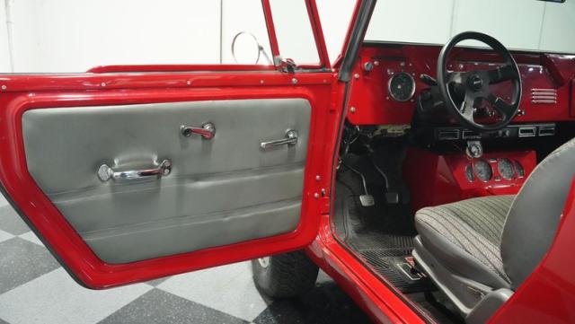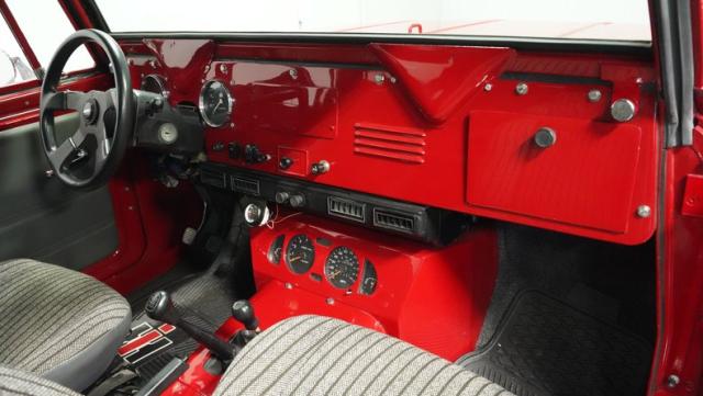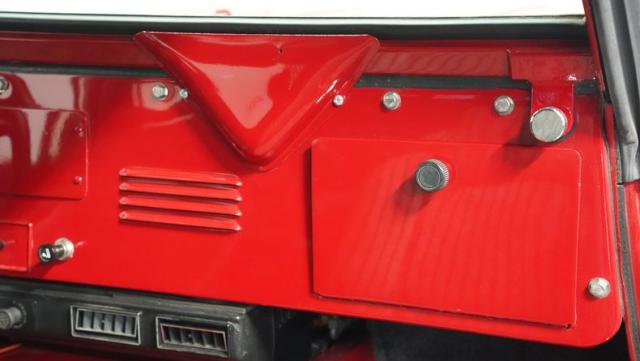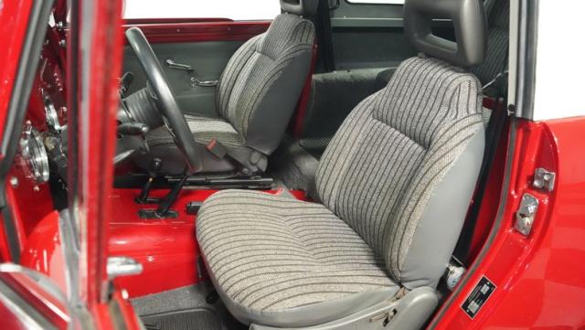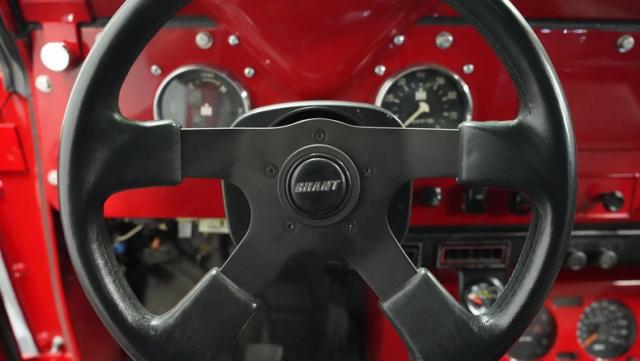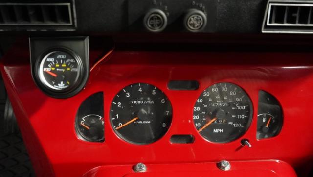 The interior features the 1999 Amigo\'s tilt steering column topped with a grippy Grant GT steering wheel. The comfortable and attractive Amigo gray cloth front bucket seats and rear seat have been installed with custom made vinyl door panels to match. A sunroof built into the removable hardtop allows extra light into the cabin. The original HI logo gauges are still in the dash, as well the instrumentation from the Amigo carefully installed in a custom fabricated lower center panel just below the air conditioning vents. A roll bar as also been installed.