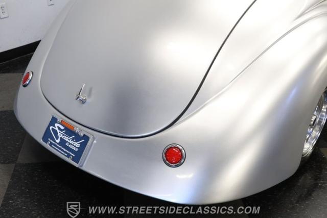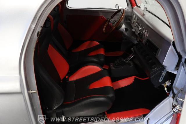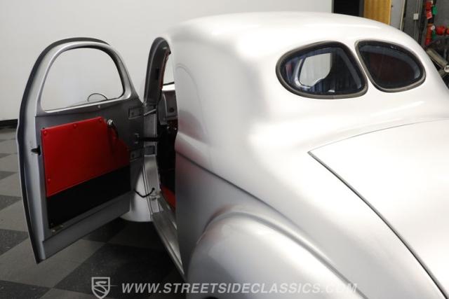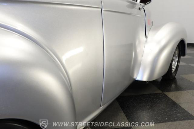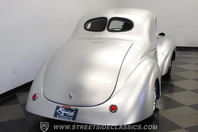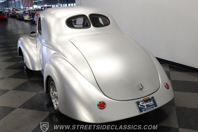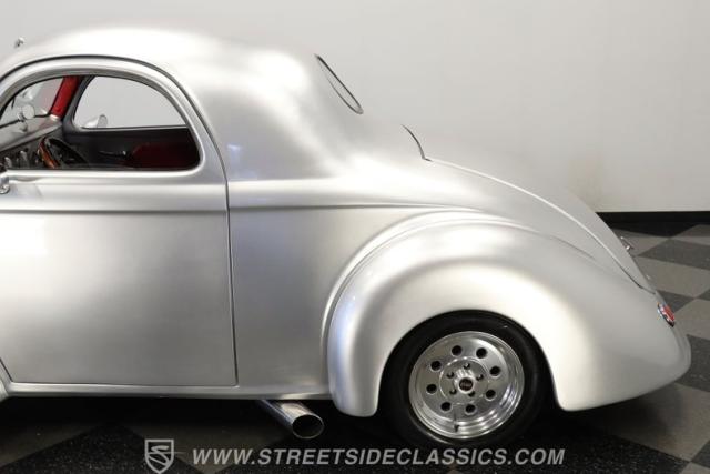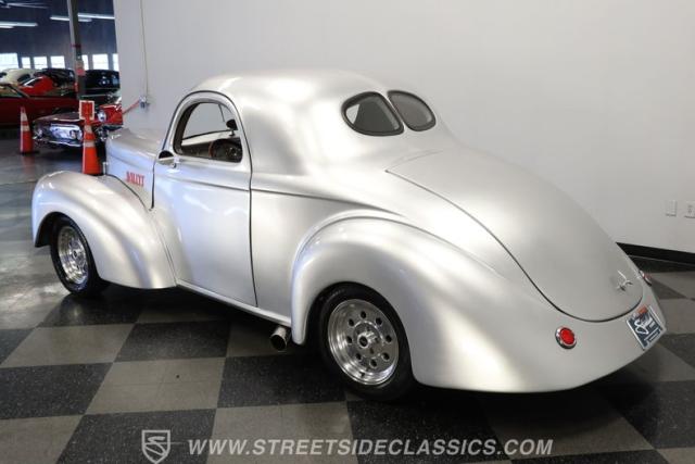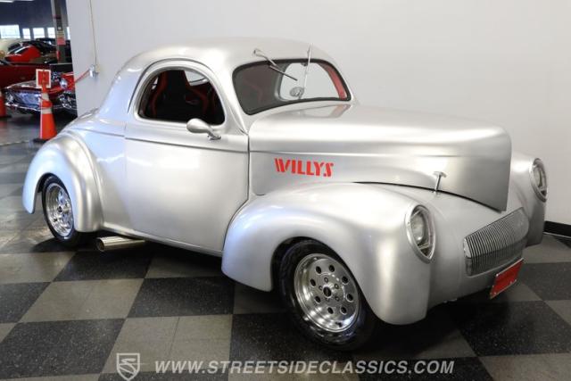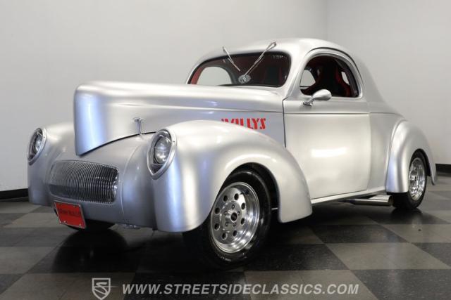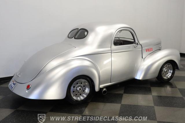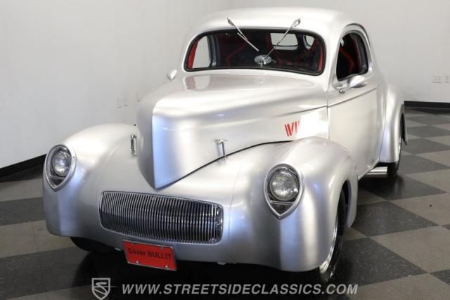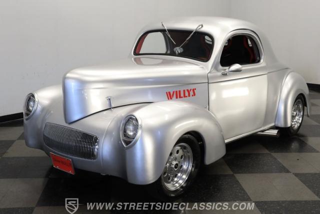 When Willys Overland Motors decided to modernize the appearance of its offerings as the \'40s were approaching, it was largely a \"Hail Mary\" move intended to energize flagging sales. But the results were met with an enthusiastic response, and consumers were drawn to the much more futuristic look of the company\'s new product line. Little did they know that the move would also inspire legions of modded car enthusiasts, who embraced the new cars as the foundations of countless aftermarket projects. This 1941 Willys Coupe serves as testimony to the design skills of its manufacturer. Dressed in Silver Ice Metallic paint and outfitted with shaved door handles, it gives off an unmistakably aggressive aura, and, with its robust drivetrain pairing with an all-fiberglass body and fenders, it features an outstanding power-to-weight ratio to back it up.