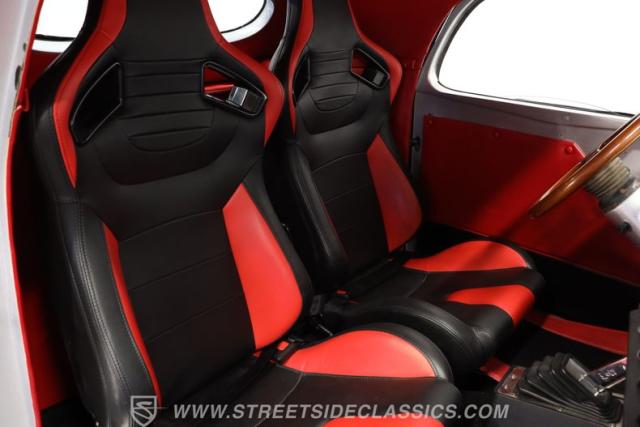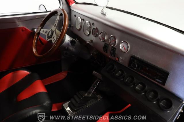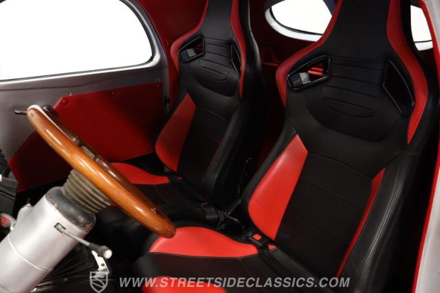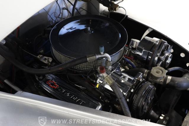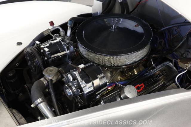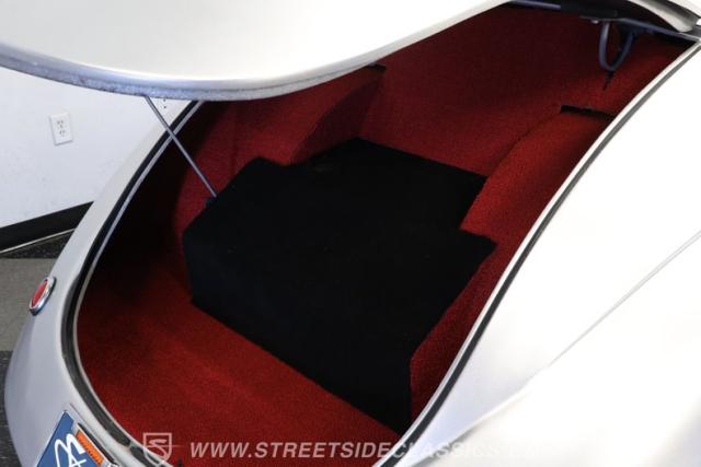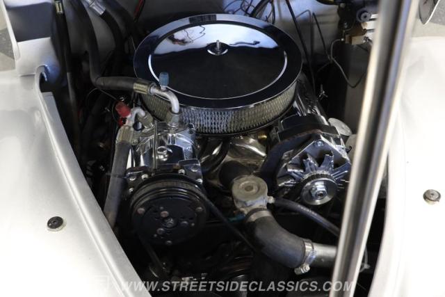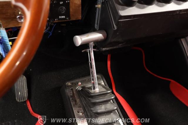 This coupe is equipped to perform. It features a 350-cubic-inch V8 that\'s fed by an Edelbrock 4-barrel carburetor perched on top of a high-rise manifold by the same manufacturer, and - with its weight-saving fiberglass body yielding an outstanding power-to-weight ratio - it doesn\'t take much imagination to picture the results. The addition of an HEI distributor and an aluminum radiator brings maximized spark and better temperature control. It rides on a Street Beast suspension with adjustable coilovers up front and air shocks in back, while power brakes with discs up front bring it to prompt, fade-resistant stops.