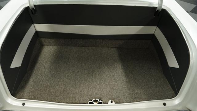 The interior presents a stylish blend of gray and white, featuring vinyl bucket seats juxtaposed with custom door panels and a suede headliner, crafting a cockpit that is both stylish and comfortable. Illuminating the path ahead, the glow of Dakota Digital gauges adds a modern touch, while the custom center console, equipped with an AM/FM single CD player and Bluetooth connectivity, ensures your favorite tunes are never more than a tap away. Enhanced with vintage air conditioning for a cool and relaxed driving experience, the ambiance is further brightened by LED lights throughout, creating a harmonious balance between classic aesthetics and contemporary convenience.