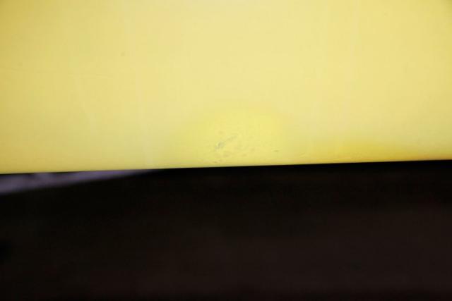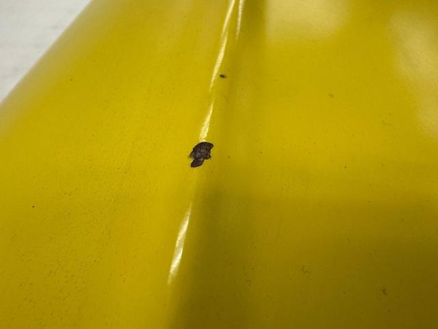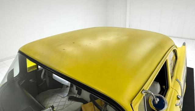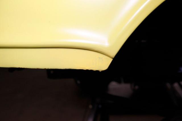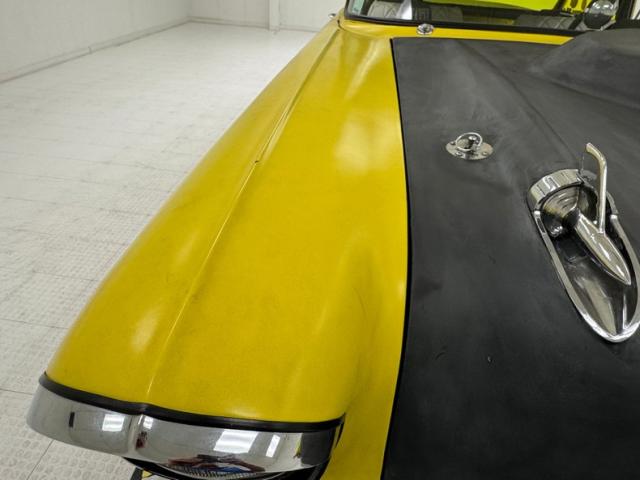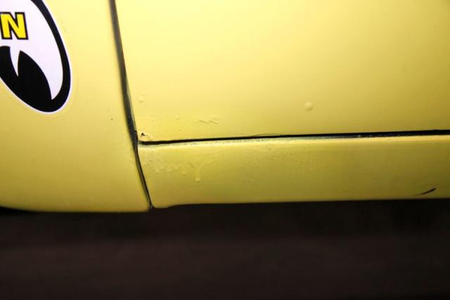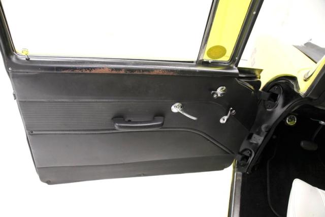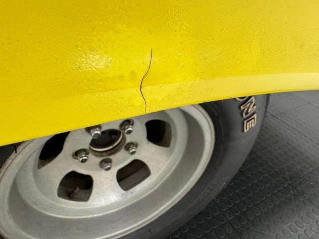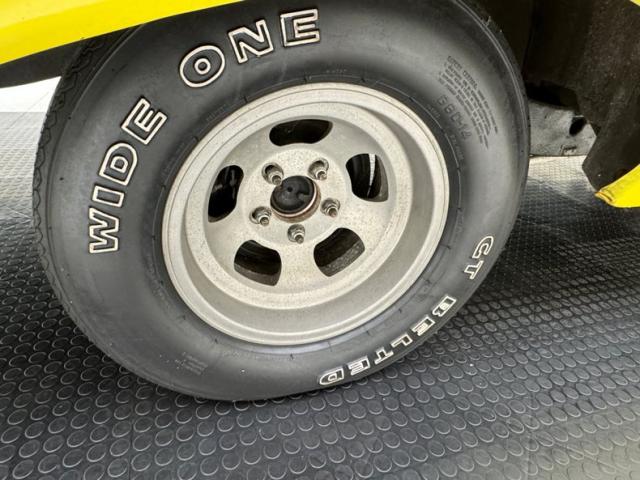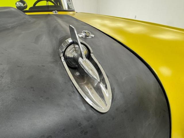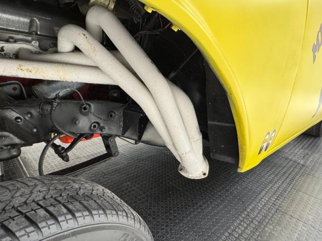 The beautiful lines of the 1957 Chevrolet form have been carefully maintained with the only difference being the jacked suspension and some chrome removed. This car is bathed in yellow with a few inclusions, paint runs, chips and cracks in the bodywork but keeps its chrome trimmings all around. The front bumper has been removed, (weight savings), and a tubular chrome grille replaces the original. Some racing monikers adorn the yellow tinted glass, moon eyes, a 427ci engine call out and Jenkins Competition paintwork have been added to the body. We have no paperwork to back up any claims of the car or drivetrain having any ties to Jenkins Competition or Grumpy himself. Up front rocket trimming adorn the satin black painted fiberglass teardrop hood and on back a simple gold V adorns the trunk while a bright and shiny chrome bumper hangs below and melds with the tail lights to dress up the rear and tops of the fins. Within the front wheel wells are snarling white header pipes which form into a single cut off pipe that when the engine is fired up will absolutely \"rack off\". 14-inch Centerline aluminum wheels are on the front and in the back are a pair of Ansen aluminum slots in more 14\" format.