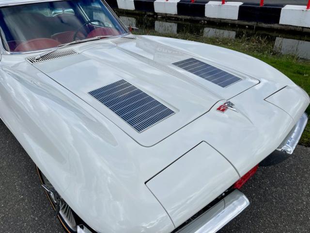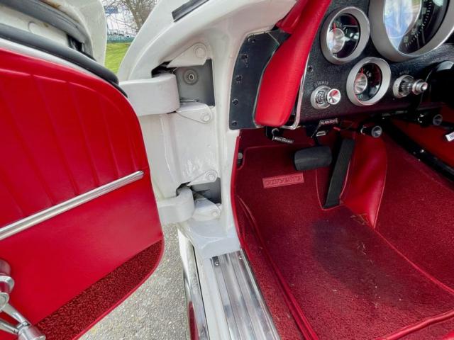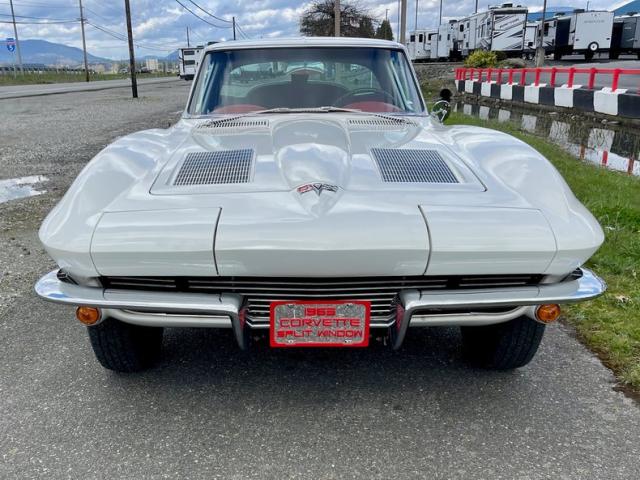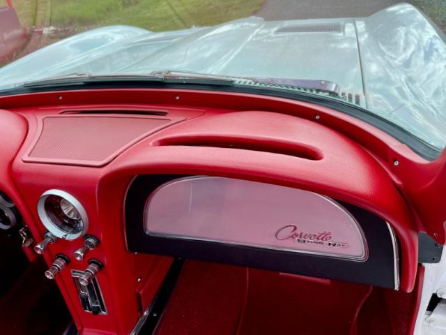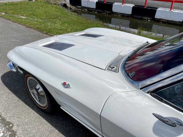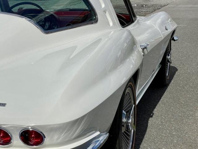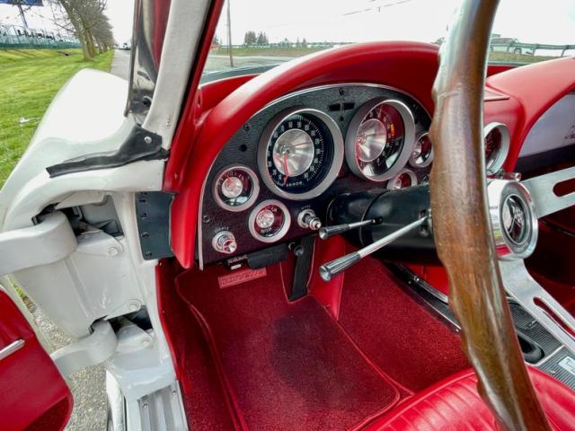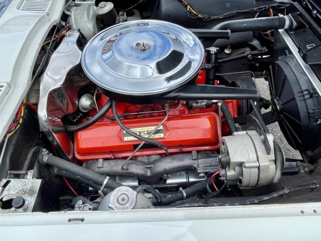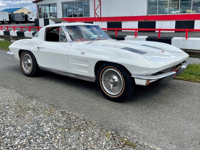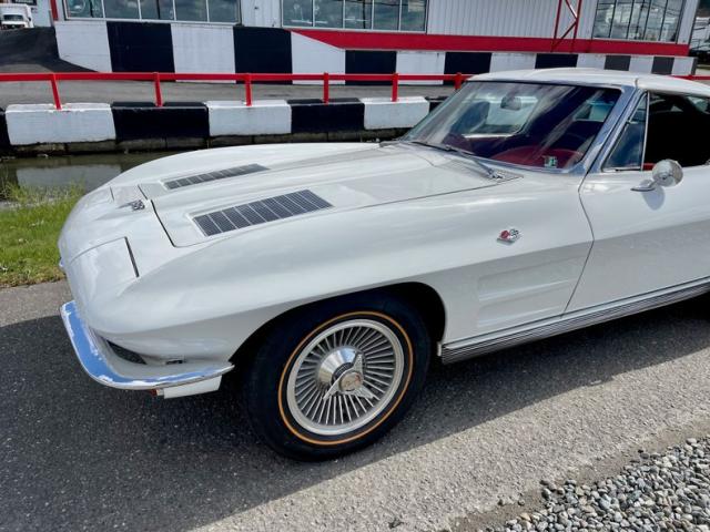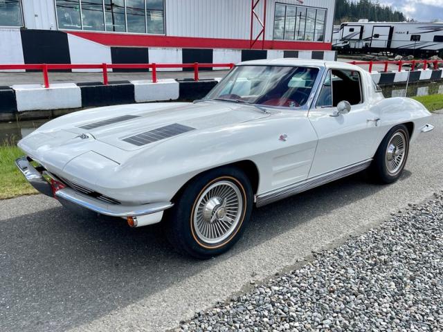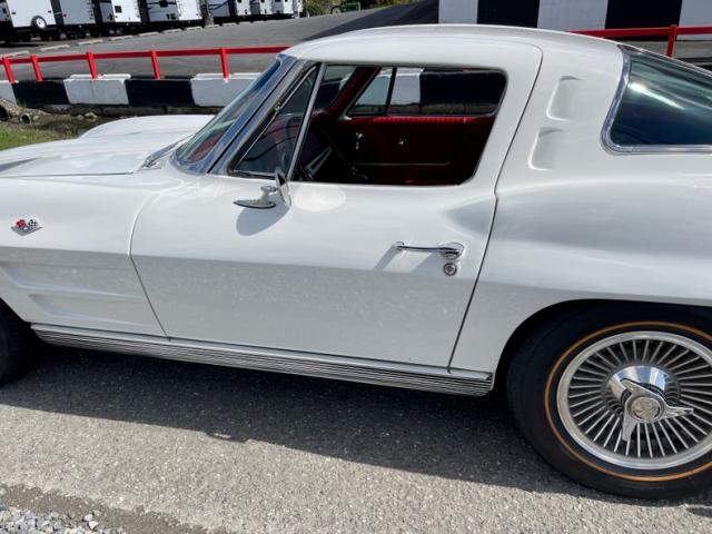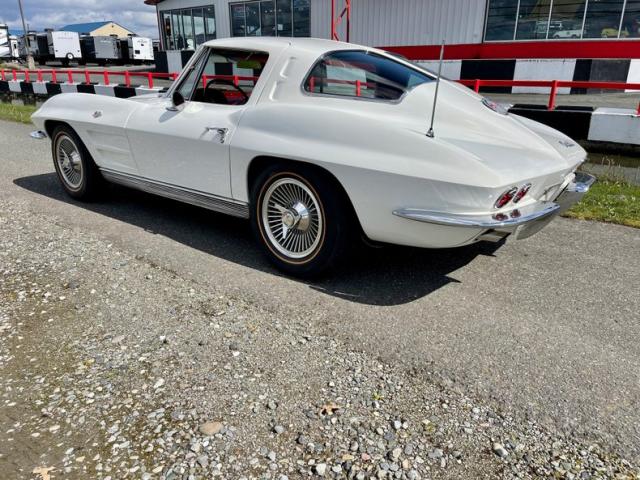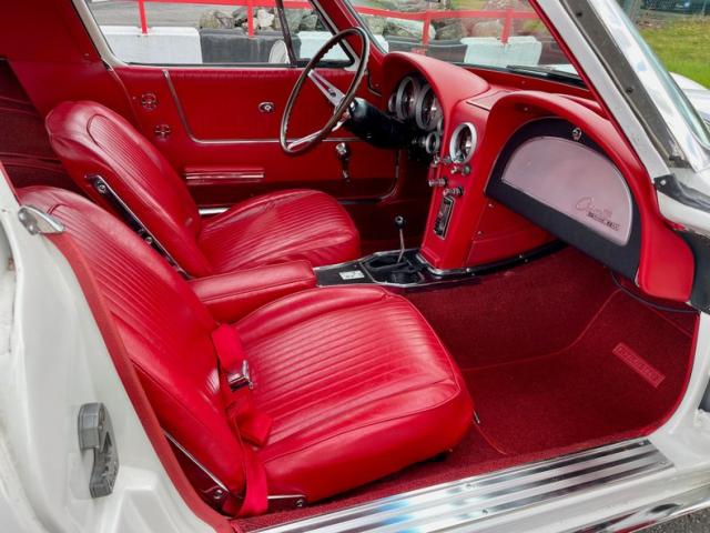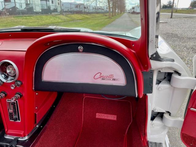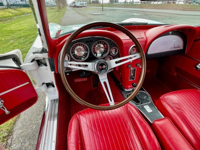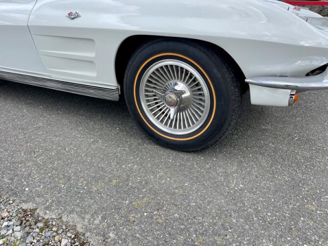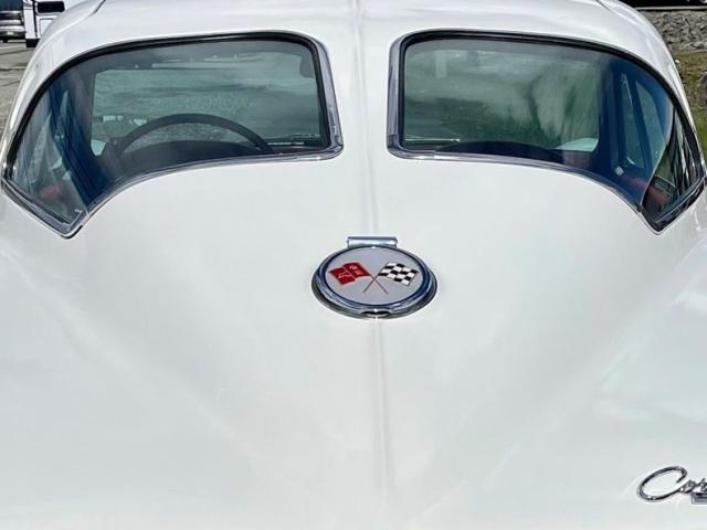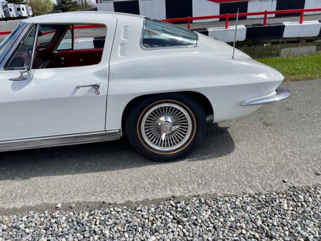 1963 Corvette Split Window Coupe DGC8499 VIN 30837S108499 1963 Chevrolet Corvette Sting Ray coupe is in \"excellent\" condition, and has been used \"strictly for car shows and good-weather pleasure drives.\" Under the hood is a \"L75\"-code 300-horsepower 327-cu.in. V-8 engine. Powerglide automatic transmission. Factory-style knockoff wheels. Manufactured by KCM wheels to exact specifications of the original Kelsey Hayes turbine wheels. You can read about these wheels in the photos. Manual steering and power-assisted drum brakes. Little explanation is needed for the classic 1963 Corvette Sting Ray and the dramatic styling of the iconic split-window coupe. It\'s rolling sculpture. The example offered here is in Ermine White over red leather. According to the last owner it is said to have been purchased in its current condition and is believed to be largely original, down to the 36,400 miles on the odometer. The details of previous restoration work are unknown. It is believed to be original, although a rebuild history is unknown. Carter aluminum four-barrel carburetor, the engine is said to \"start easily with a few pumps of the gas pedal,\" with no smoke and no leaks. The complementing two-speed automatic is also reported to \"shift perfectly.\" The cooling system has been upgraded to include a thicker aluminum radiator and an electric fan. This Sting Ray\'s Ermine White paintwork matches the \"936\" code on the interior-mounted trim tag. The history of the paintwork is unknown, but the previous owner notes its condition as \"95 percent,\" with no blemishes and no reported swirl marks. The exterior trim and chrome, including the 1963-only aluminum simulated hood grilles, appear to be in very good condition, with no pitting in the chrome bumpers. The body lines and panel gaps also appear to be in very good shape. Dressed in red, this Corvette\'s cockpit casts a striking contrast to the white exterior. The previous owner reports the cabin is in \"excellent\" condition, with some age-related wear is evident in the seat covers, but no holes or rips. Additionally, the carpet and headliner are said to be in \"excellent\" condition, while the gauges are reported as functional. The same goes for the radio, which is a later cassette unit from Custom Autosound. There is some visible wear in some of the interior trim, along with a small crack visible in the wood-rimmed steering wheel, but the overall presentation of the interior seems very good. The previous owner asserts the suspension and chassis components are in good condition, with no known issues or needs, and have been maintained to stock specifications. No known rust in the chassis, either. Equipment includes manual steering and power-assisted drum brakes, both of which are said to work well. The car rolls on \"like-new\" radial tires mounted on factory-style knockoff wheels. The tires are said to be in \"excellent\" condition and show virtually all of their remaining tread, while the wheels are said to be in \"very good\" condition. This is an early Corvette as it has under seat storage for both seats. We have been very impressed with the overall condition. It looks almost new on the underside. I just pulled the wheels off so I would know whether they were the original Kelsey Hayes. I found out they are KMC wheels. I have been underneath this car enough to know that it is a frame off restoration. Lots of new nuts and bolts. Everything is in excellent condition. It looks beautiful.