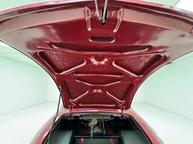 Clean conditions are found underneath as well with the driveshaft moving through the X-frame and also a driveshaft loop. Dual exhaust runs in tandem through Turbo mufflers and exits ahead of each rear wheel. Brakes are on board as disc front and rear drum and suspension consists of a Mustang II front end and coilovers with ladder bars in back.
