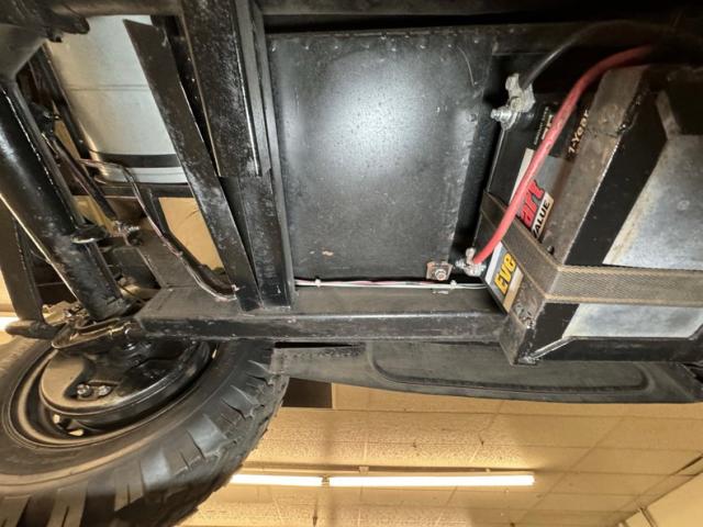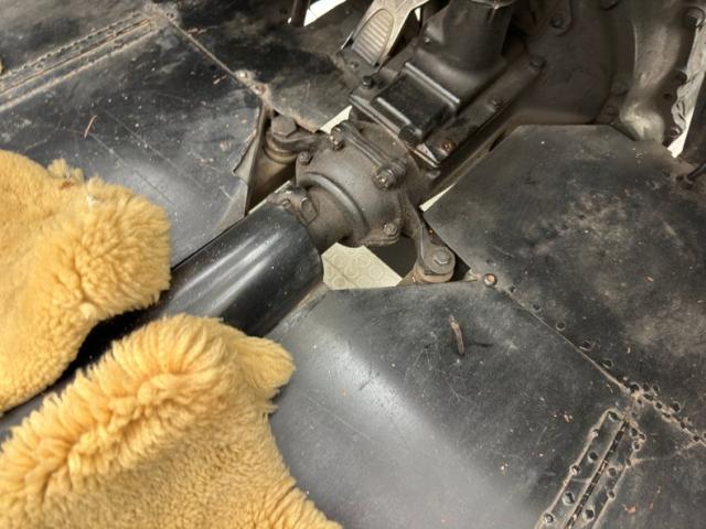Bare bones underneath, a virtual skeleton of automotive design. There\'s no surface rust nor dirt underneath, but we do see drops of oil at the transmission, oil plug, and a touch on the rear differential. Suspension consists of transverse leaf springs front and rear.