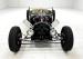 Hop over the shell to find a pair of sheep skin covers forming two sitting areas in a sparse interior that is highlighted by a custom bat shaped steering wheel in front of a pod of three Stewart Warner gauges. The long shifter rises from the visible transmission in the floor and welded plates make up the uncovered floor where a Speed King gas pedal is flanked by the round pedals of the brake and clutch. It\'s all very raw and old school and speed is determined by your own inner meter.