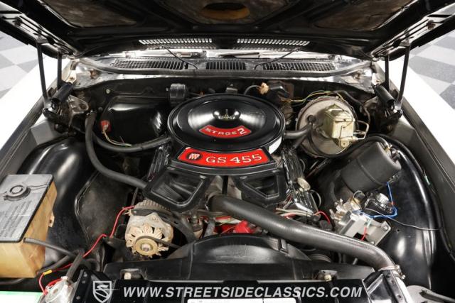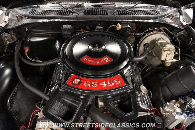 Lift the hood to reveal the star of the show - a massive 455 cubic inch V8 engine. This powerplant is no ordinary mill equipped with TA Performance Stage 1 heads, giving it a serious performance edge. A Rochester Quadrajet carburetor sits atop an Edelbrock Performer Buick intake, while long-tube headers help the engine breathe easy. The beefy V8 is mated to a TH400 3-speed automatic transmission, ensuring strong acceleration and reliable cruising. Power steering and front disc brakes provide confident handling and stopping power, making this Buick as easy to drive as it is to admire.