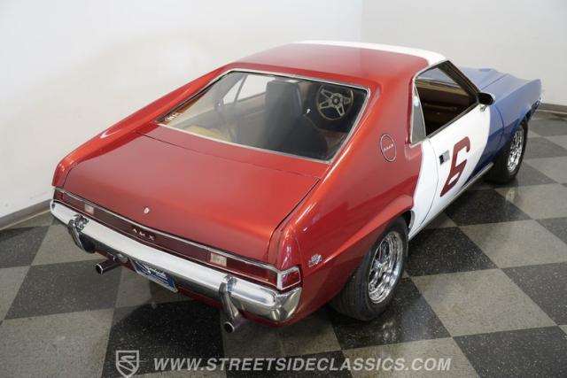 Step inside and you\'ll find a clean, factory-inspired interior featuring fresh black vinyl bucket seats that invite you to settle in for the ride. The floor-mounted shifter and GT Grant steering wheel offer a hands-on, connected driving experience, while a blend of factory gauges and modern AutoMeter readouts keep you informed. Rear carpet is present, and the overall cabin maintains a classic, purposeful look that stays true to the AMX\'s performance roots.