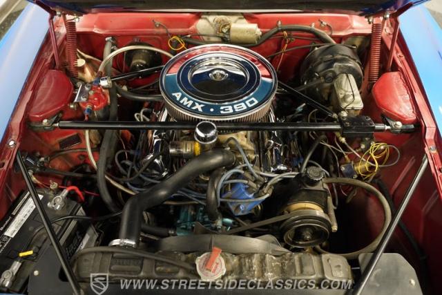 Under the hood, a rebuilt 390 cubic inch V8 delivers classic muscle car power, paired with a 4-speed Borg Warner T10 manual transmission for maximum driver engagement. The single Demon 4-barrel carburetor, chrome valve covers, and chrome air cleaner add visual flair and performance, while power front disc brakes and a factory-style lowered suspension ensure confident stops and surefooted handling. The AMC 20 rear axle and General Altimax RT45 tires round out a drivetrain built for both cruising and spirited driving.