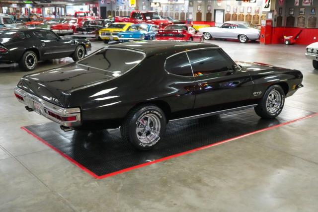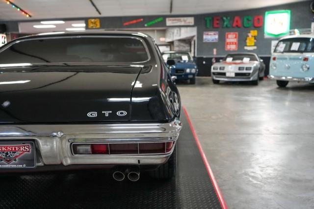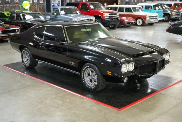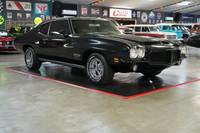 This 1971 Pontiac GTO is a true muscle car icon powered by a formidable 455 HO V8 paired with a Muncie 4-speed manual transmission. A 12-bolt POSI rear end with 3.55 gears delivers strong acceleration and classic street performance. Equipped with power steering, power brakes, and front disc brakes, it offers confident drivability. The white vinyl interior contrasts beautifully with the black exterior paint, while a Hurst shifter adds to the authentic muscle feel. Riding on 15-inch Cragar S/S wheels wrapped in wide BFGoodrich Radial T/A tires, this GTO combines aggressive stance, big-block torque, and timeless Pontiac heritage. THIS VEHICLE QUALIFIES FOR FREE SHIPPING AND A WARRANTY!!