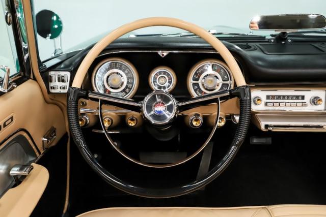 INTERIOR: This was among the finest interiors offered from the late 50s to the early 60s. It is restored to like new condition. Glove soft genuine leather upholstery. The door panels are pristine. The entire dash area is pristine. Restored dash pad, the metal was repainted, all the chrome sparkles. The knobs, lenses, vents, steering wheel are pristine. The clock is rebuilt and working. It has power seat and power windows. It has a remote controlled hidden CD changer tied into the original radio.