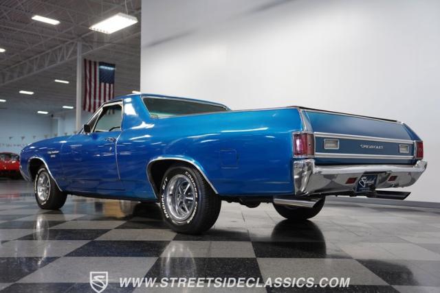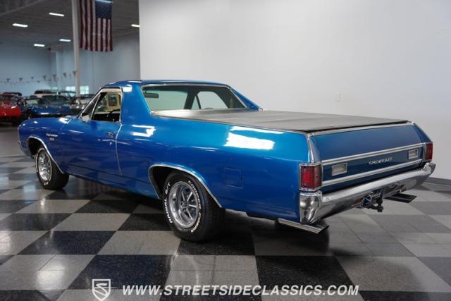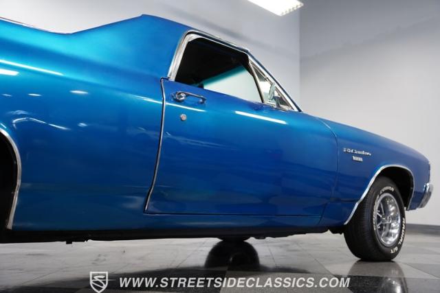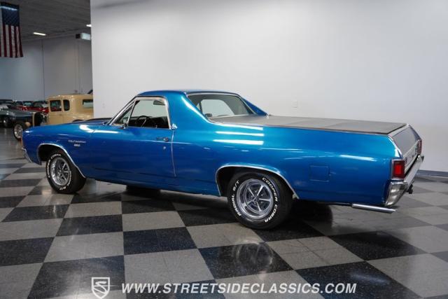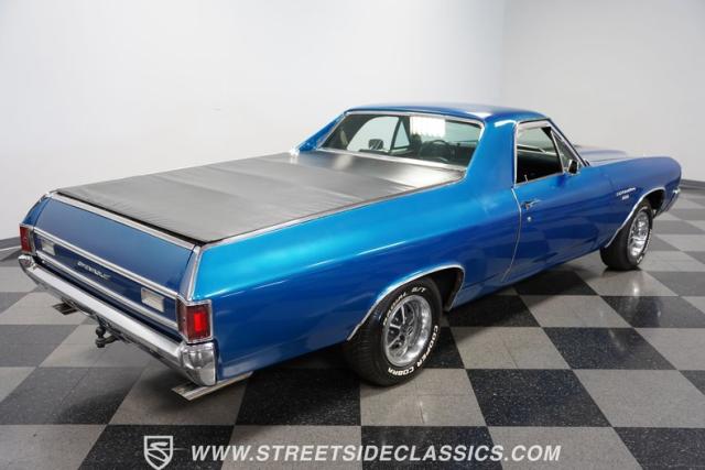 Powering this sweet El Camino is a rebuilt 350ci V8 mated to a smooth-shifting TH350 automatic transmission that\'s also been rebuilt. With power front disc brakes, an Edelbrock aluminum intake, FiTech electronic fuel injection, and Hedman long tube headers, this setup makes for a solid cruiser. The Flowmaster dual exhaust provides the perfect soundtrack as you roll on the Cooper Cobra Radial T/A tires wrapped around 14\" wheels.
