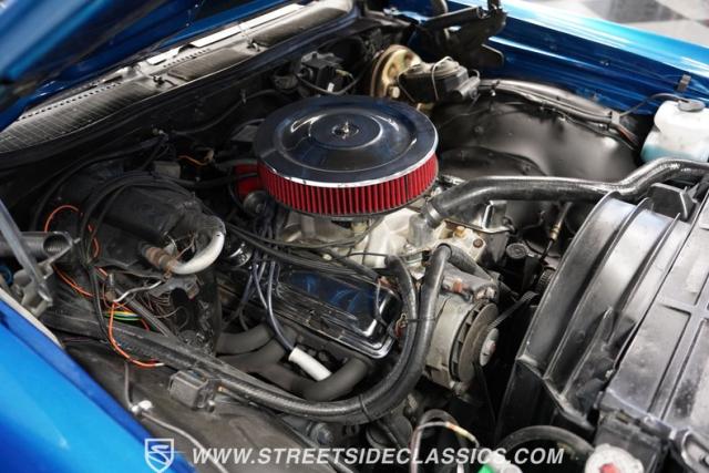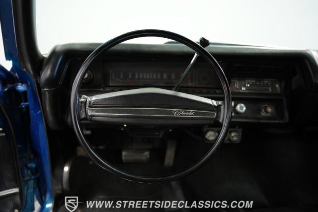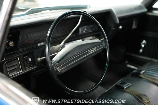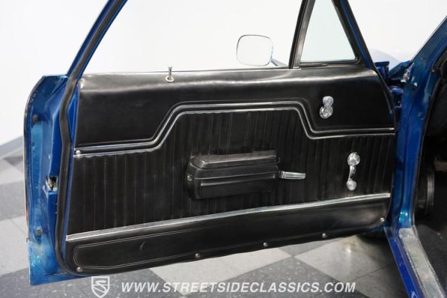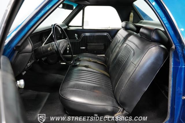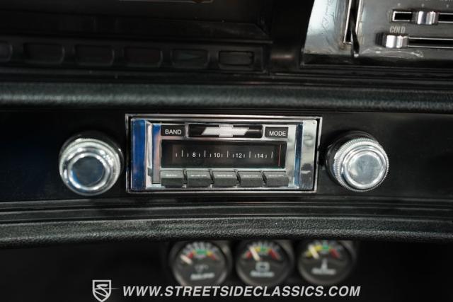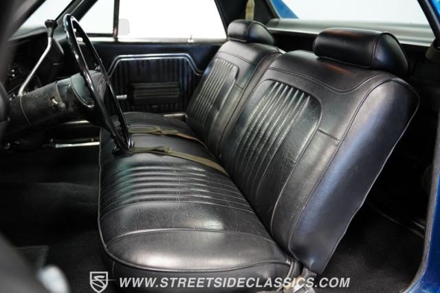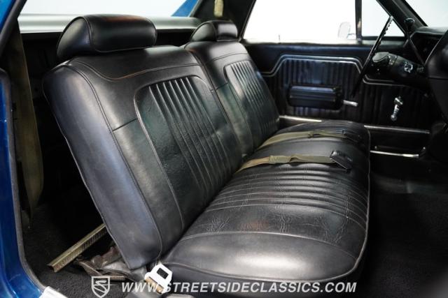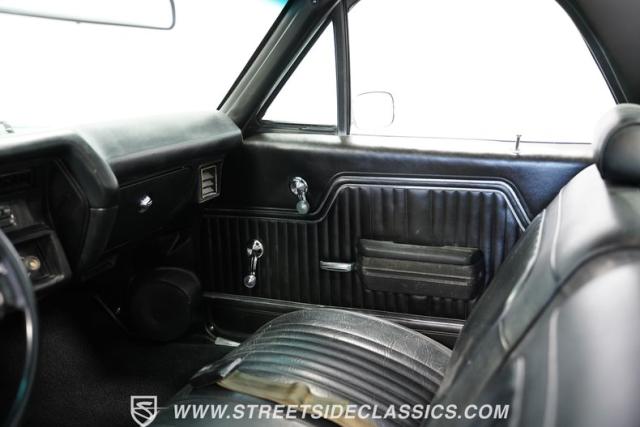 Inside, this 1972 Chevrolet El Camino keeps the vintage vibes rolling with a black interior and bench seat that\'s pure 70s cool: the matching door panels, headliner, and carpet tie together for a cohesive look. You\'ve got a retro-style AM/FM/AUX stereo to play your favorite driving music and an auxiliary gauge cluster for keeping an eye on the vitals. The column shifter and power steering make for comfy cruising, while SS-style upgrades add the perfect finishing touch to this classic interior.