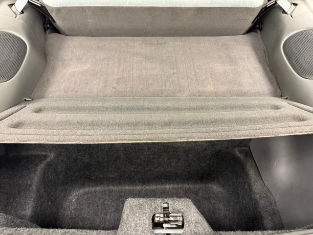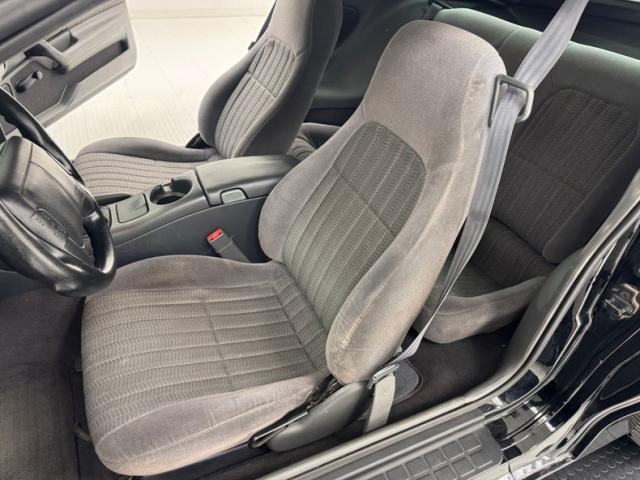 Dark gray plastics surround a cloth herringbone insert on the door panels, each clean and intact. That cloth pattern returns on the inserts of the bucket seats and as all cloth, there\'s naturally a touch of wear on the driver\'s side but the deep 2+2 in back and passenger seat are in very good condition. An ergonomic steering wheel tries its best to look cool, but the big \'ol air bag in the middle turns it softly pedestrian in the first year bags were mandated. Clean plastics surround the instrument cluster behind plexiglas and the center stack holds the big buttoned AM/FM/CD radio and three knob A/C panel. A big black ball handle tops the fun stick in the center console while a low pile gray carpet covers the floor. A formed headliner is covered in gray cloth and the deep storage in the back is finished in charcoal cloth lined panels, and each is clean, evidence that this car has been well cared for.