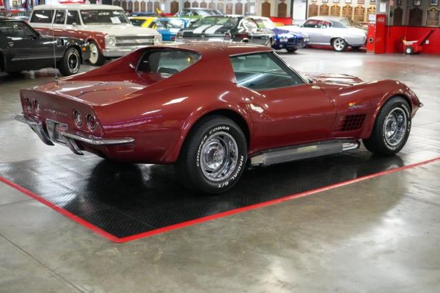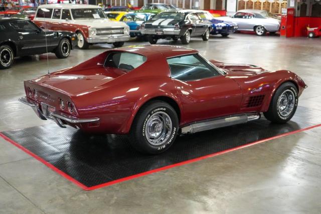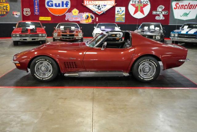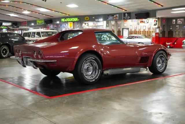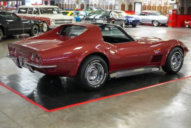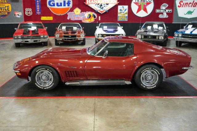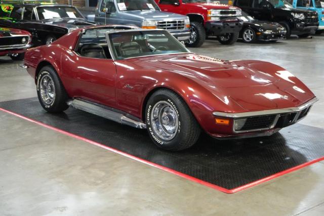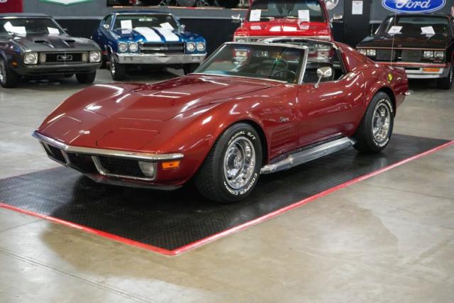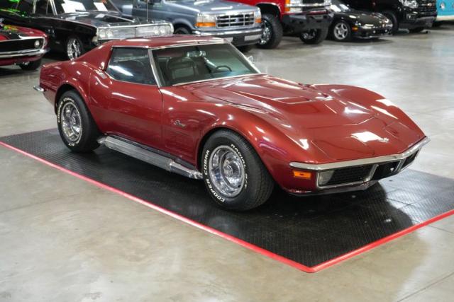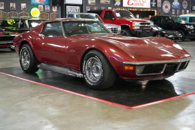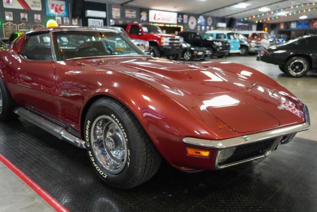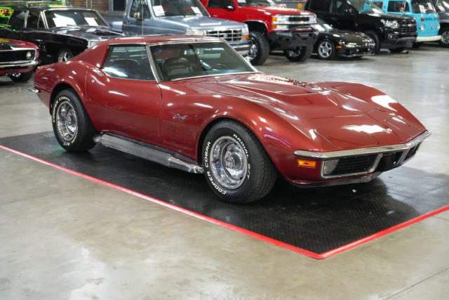 This 1970 Chevrolet Corvette Stingray is a beautifully preserved, numbers-matching example of classic American performance. Powered by a 350 Small Block Chevy V8 paired with a Muncie M20 4-speed manual transmission, it delivers an engaging driving experience. A POSI IRS rear with 3.55 gears ensures strong acceleration and handling. Finished in rich maroon over a black leather interior, it features T-tops and four-wheel disc brakes. Riding on OEM Rally wheels with Cooper Cobra tires, it retains its factory character with a Rochester 4-barrel carburetor, HEI ignition, and OEM components throughout making it a true driver-focused classic Corvette. THIS VEHICLE QUALIFIES FOR FREE SHIPPING AND A WARRANTY!!