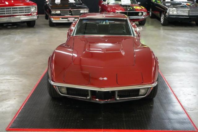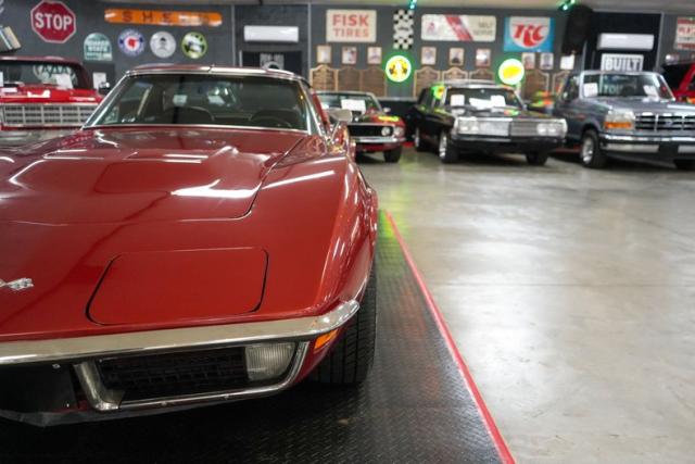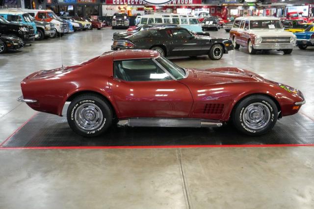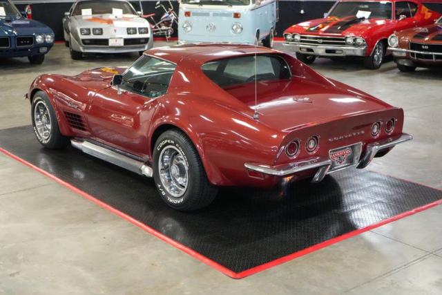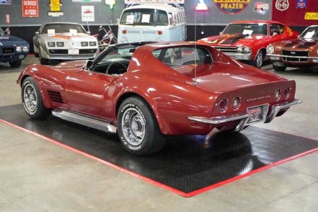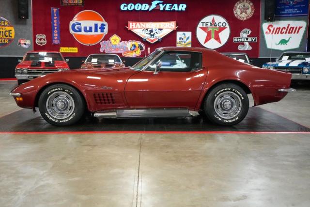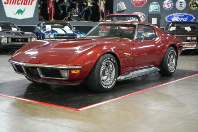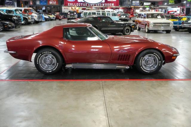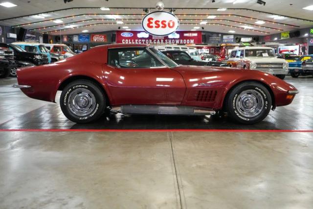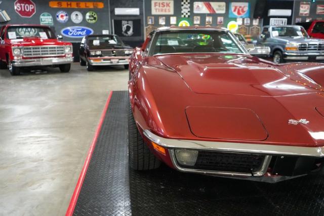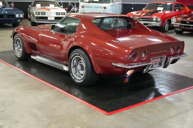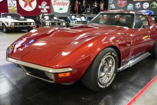This 1970 Chevrolet Corvette Stingray is a beautifully preserved, numbers-matching example of classic American performance. Powered by a 350 Small Block Chevy V8 paired with a Muncie M20 4-speed manual transmission, it delivers an engaging driving experience. A POSI IRS rear with 3.55 gears ensures strong acceleration and handling. Finished in rich maroon over a black leather interior, it features T-tops and four-wheel disc brakes. Riding on OEM Rally wheels with Cooper Cobra tires, it retains its factory character with a Rochester 4-barrel carburetor, HEI ignition, and OEM components throughout making it a true driver-focused classic Corvette. THIS VEHICLE QUALIFIES FOR FREE SHIPPING AND A WARRANTY!!