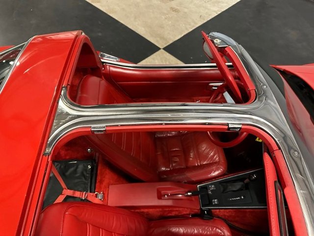 Interior is Original and Red leather that is like new. The seats, door panels, carpet, dash pad, console, floor mats, all factory gauges, factory A/C and heat, power steering, 4-wheel power disc brakes with SS calipers, tilt and telescopic column, red wrapped leather steering wheel, rear defrost, power windows, AM/FM/CB radio. Remote mirror on driver’s side. Red seat belts, door sill plate. T-Top covers all like new. Looks new inside.