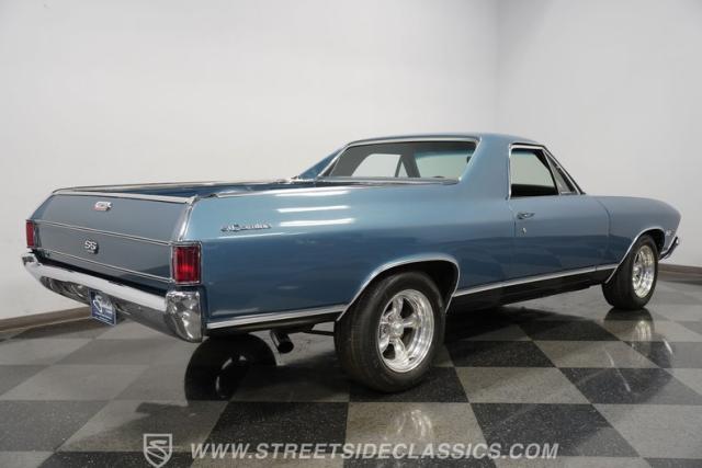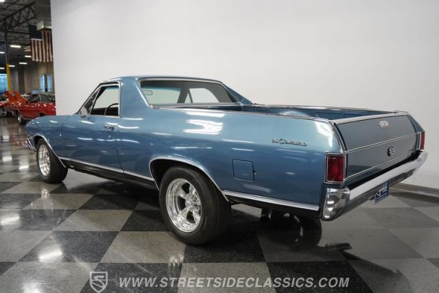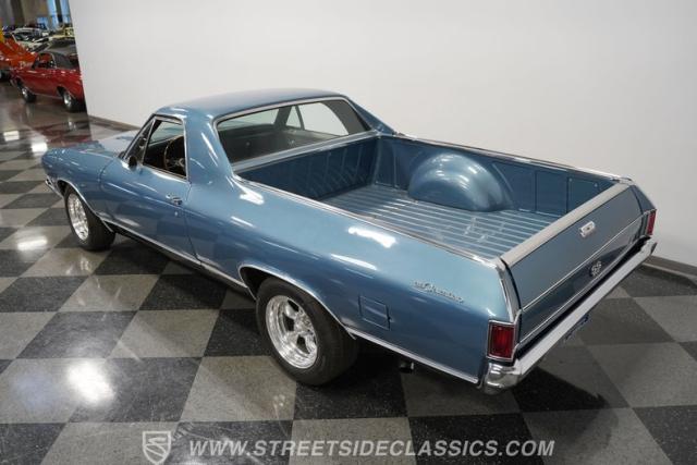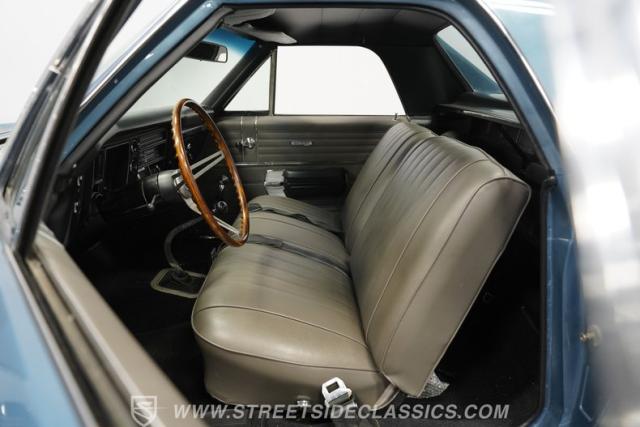 Step inside to find a beautifully restored interior that captures the spirit of the late 1960s. The bench seat, door panels, and carpet are all in very good condition, offering a comfortable and inviting cabin. The dashboard is clean and uncluttered, and the aftermarket wood-handled steering wheel adds a touch of vintage flair. With a four-speed Muncie shifter and a stock look throughout, every detail inside this El Camino is ready to impress.