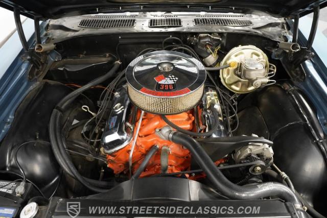 Under the hood lies a numbers-matching 396 V8 engine, paired with a Muncie 4-speed manual transmission for an authentic muscle car feel. The engine breathes through a single four-barrel carburetor, while chrome valve covers and a chrome air cleaner add to its classic appeal. Power front disc brakes, power rear drum brakes, and a 12-bolt rear axle ensure confident handling. Recent upgrades include newer hoses and belts, plus replaced alternator and brake booster, for added reliability and performance.