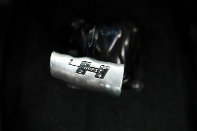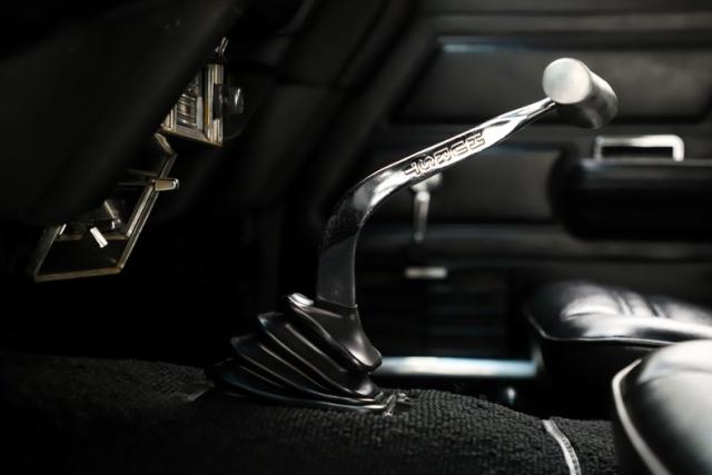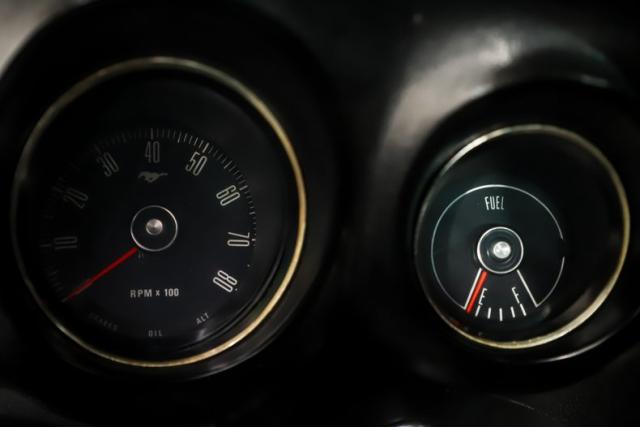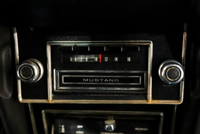 INTERIOR: I\'m sitting in the car and it has a very nice, unabused interior that I believe a good portion is still original. Down on the floor the carpets have been replaced, it has pony floor mats, a full set of seat belts and the Hurst T-handle 4-speed sticking out of the hump. The dash area appears to be all original and in very good shape including the optional tachometer and AM 8-track stereo. The door panels and armrests are in excellent shape, the door speakers are correct with the 8-track stereo. The seats have very good upholstery, headliner and visors are looking real good too. The interior lights works, the owner\'s manual and sales brochure are included.