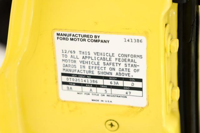 ENGINE COMPARTMENT: This motor compartment is detailed back to its factory original condition! At the heart of it is the high revving Boss 302 motor rated at 290 horsepower but most can agree it was closer to 400! Factory features include solid lifters, Cleveland heads, aluminum intake and a Holley carb. They came dressed up with finned aluminum valve covers and on top of this one is the ram air shaker hood scoop assembly which is even complete with the heat riser assembly. Other features include power steering and power brakes. All of the components look clean and proper. It is detailed with reproduction hoses, clamps, spark plug wires and an Auto Lite battery topper. It\'s complete with the rev limiter, Ford washer bottle, horns, the right stickers and tags including the buck tag. It is clean metal that was neatly painted and looking sharp.