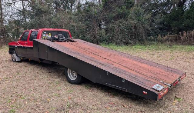 1985 Chevrolet Silverado Crew Cab 3500 1 ton wedge ramp truck, 104k miles on the dash, strong built 454ci V8 / T400 trans, power everything, hydro brakes, AC (needs hooked back up), Sony CD, rear air bag helper setup, hauls anything. In the last year, less than 1k miles, all 6 brand new tires, new 12k winch with wireless remote, new HD radiator, new fan clutch, new hoses, and more. Holley carb, Hooker headers, full dual exhaust, Auto-Meter Pro Comp gauges. Two tone paint, ghost skulls in the stripes on the hood and the deck, LED cargo lights, aluminum ramps, dual tanks, storage access. Typical Squarebody rust but comes with new rockers. Not a show truck but a solid driver you could fly in and drive this truck to anywhere. Please Note The Following **Vehicle Location is at our clients home and Not In Cadillac, Michigan. **We do have a showroom with about 25 cars that is by appointment only **Please Call First and talk to one of our reps at 231-468-2809 EXT 1 ** FREE Consignment Visit Our Site Today Easy To List Your Vehicle and Get it Sold in Record Time.