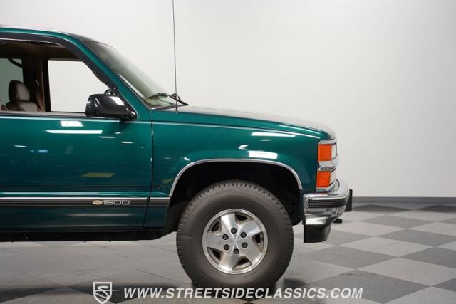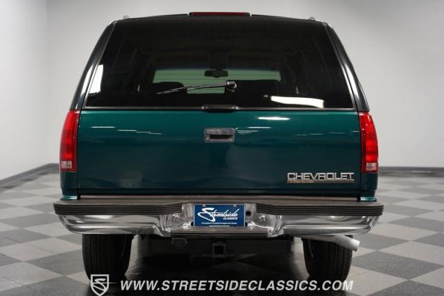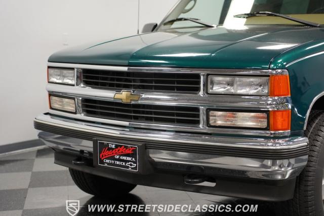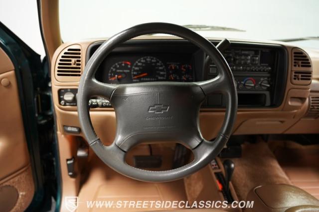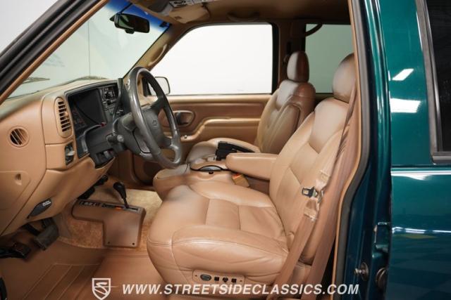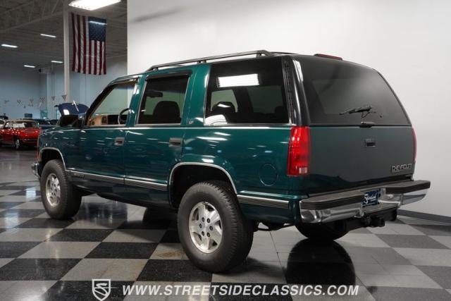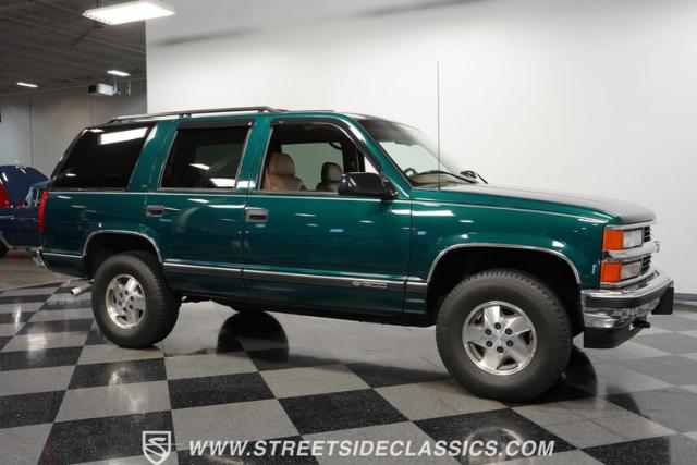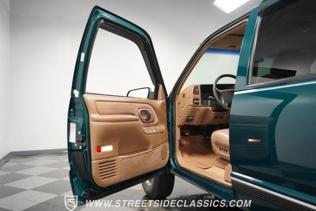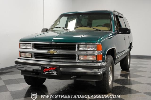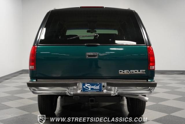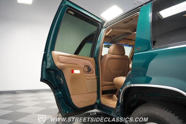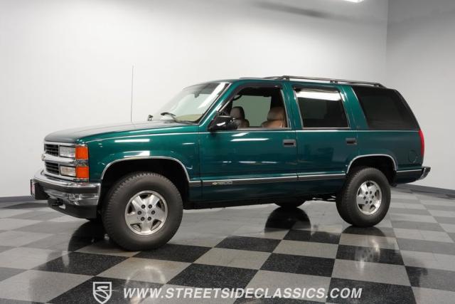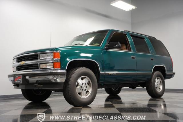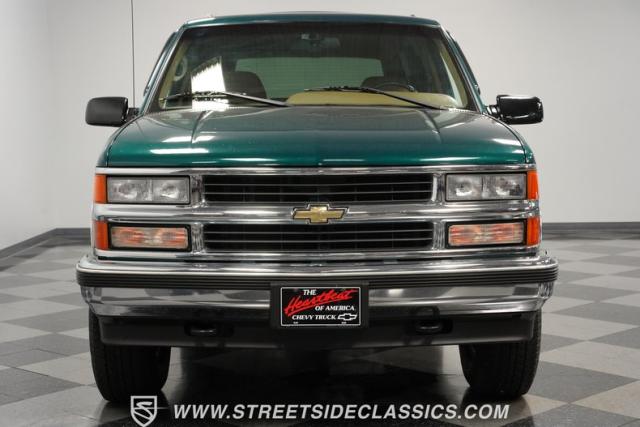 This 1995 Chevrolet Tahoe LT 4X4 boasts a mere 49,687 miles - a rare find for a nearly 30-year-old vehicle. Its Emerald Green Metallic exterior exudes a bold presence, perfectly capturing the essence of 90s SUV design. The LT 4X4 package gives this full-size SUV an authoritative stance, further enhanced by factory wheels, a practical roof rack, and functional rain guards. Privacy glass adds an air of exclusivity. With meaty 265/75R16 tires, this Tahoe is equally prepared for city streets or rugged terrain.