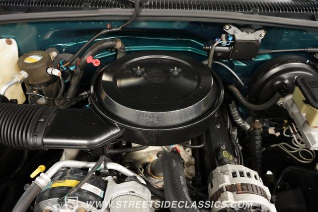A potent 5.7L TBI V8 engine provides the muscle, mated to a smooth-operating 4-speed automatic transmission. This combination delivers ample power for any situation, whether towing or tackling off-road trails. The fully functional 4x4 system allows this SUV to conquer various terrains and weather conditions easily. Power steering and front disc brakes ensure responsive handling and reliable stopping power. This Tahoe performs exceptionally well, belying its age and feeling like a much newer vehicle. A look at the engine bay reveals a clean, original appearance, while the undercarriage remains impressively preserved.