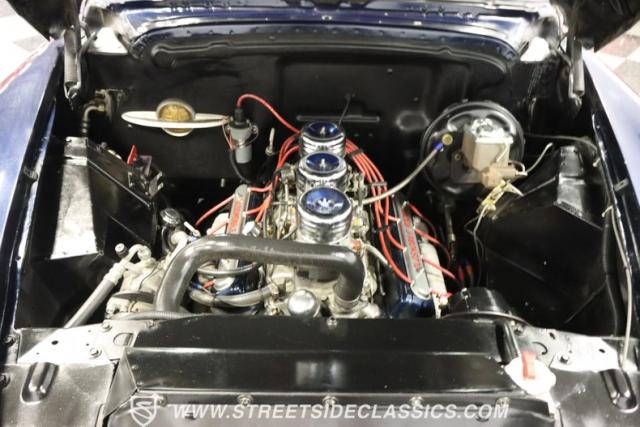 Opening the hood reveals a 350 cubic inch V8 engine, a substantial upgrade from the original. Three two-barrel carburetors sit atop an Edelbrock intake manifold, delivering increased power on acceleration. A 700R4 4-speed automatic transmission transfers that energy through a 10-bolt rear end with 3.23 gears. Power brakes (discs in front, drums in rear) offer responsive control, while the dual exhaust with MagnaFlow mufflers produces a rich sound. Manual cutouts behind the front wheels allow for on-demand amplification of the engine\'s output.